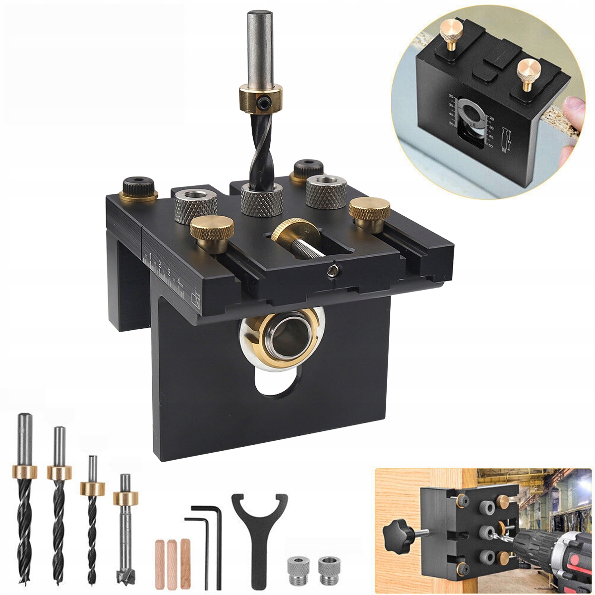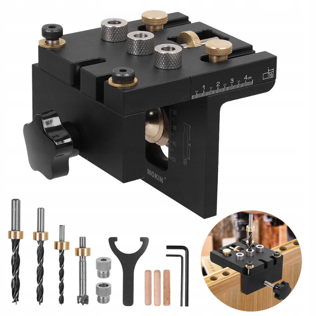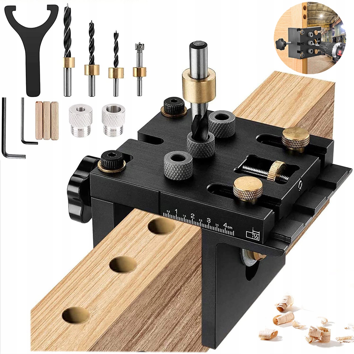 ✅【Regulowana skala】Ten precyzyjnie obrobiony zestaw prowadnic do wiercenia otworów został zaprojektowany z precyzyjną skalą na głównym korpusie. Skalę można regulować w zależności od grubości deski, co zapewnia dużą precyzję i wygodę obróbki drewna.