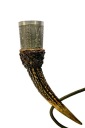 Kieliszek umieszczony na porożu to bogato zdobiony, aluminiowy odlew z prezentacją scenek oraz ornamentów nawiązujących do natury i myślistwa.