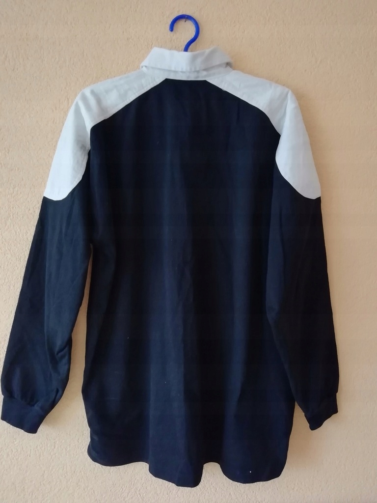 Stan bluzy bardzo dobry, bez śladów używania, faktyczne wymiary: szerokość od pachy do pachy - 61 cm, długość rękawa od ramienia - 60 - 63 cm, długość całkowita bluzy - 77 cm