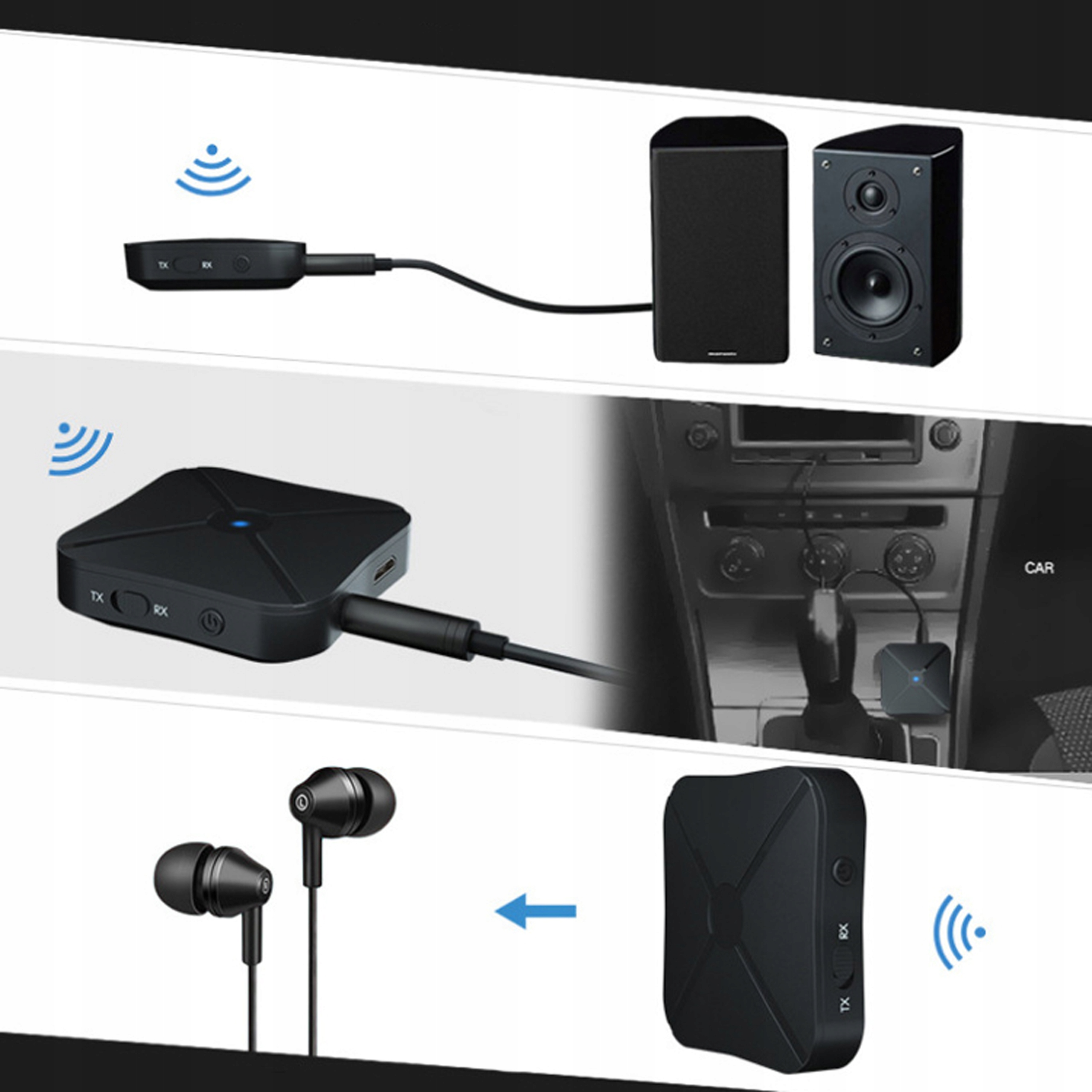 Dzięki możliwości pracy w trybie odbiornika i nadajnika, możesz bez trudu odbierać dźwięk z telefonu i przesyłać go do swojego systemu audio, lub przesyłać dźwięk z telewizora do słuchawek czy głośników, co sprawia, że masz pełną kontrolę nad swoim doświadczeniem audio.