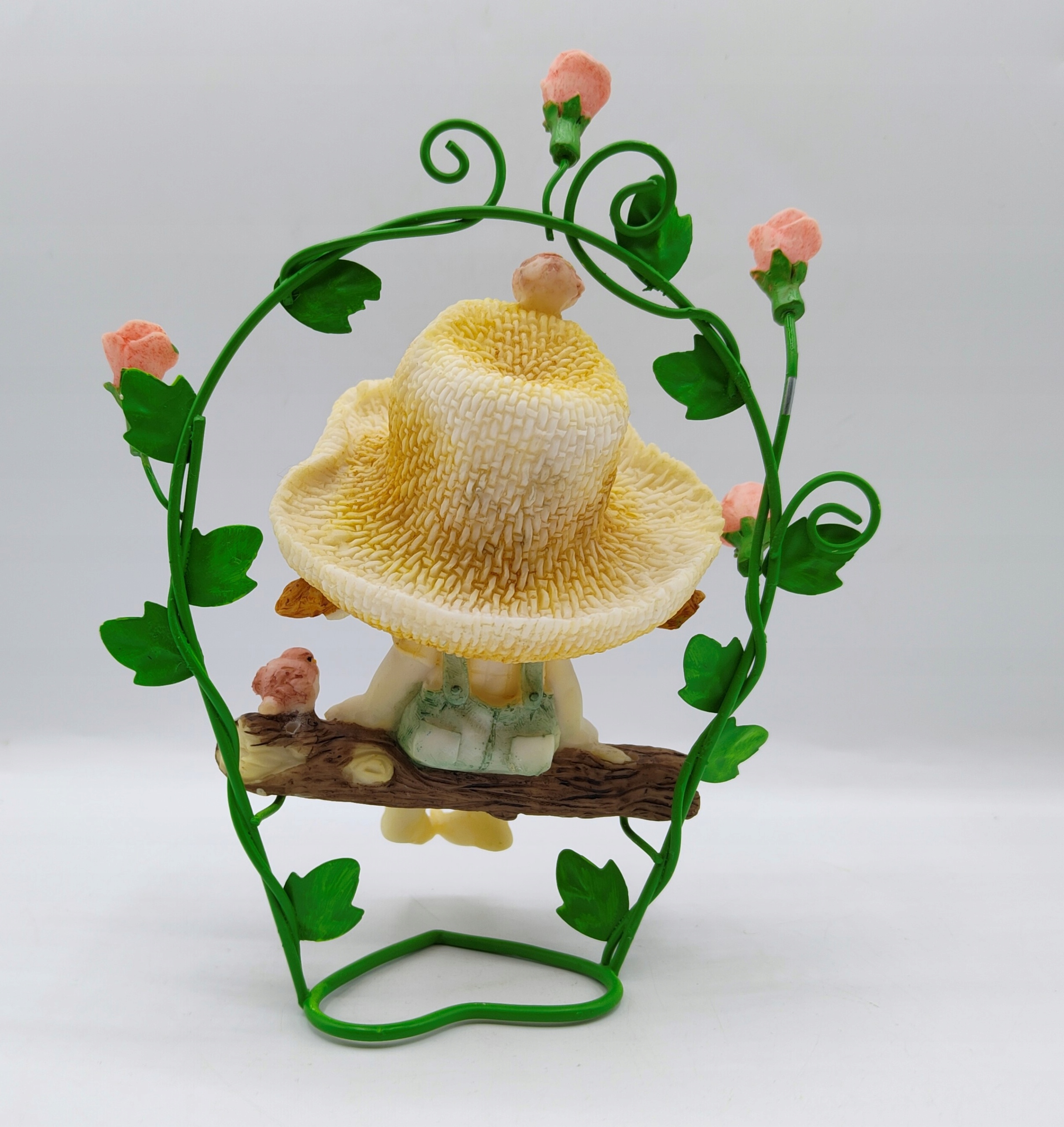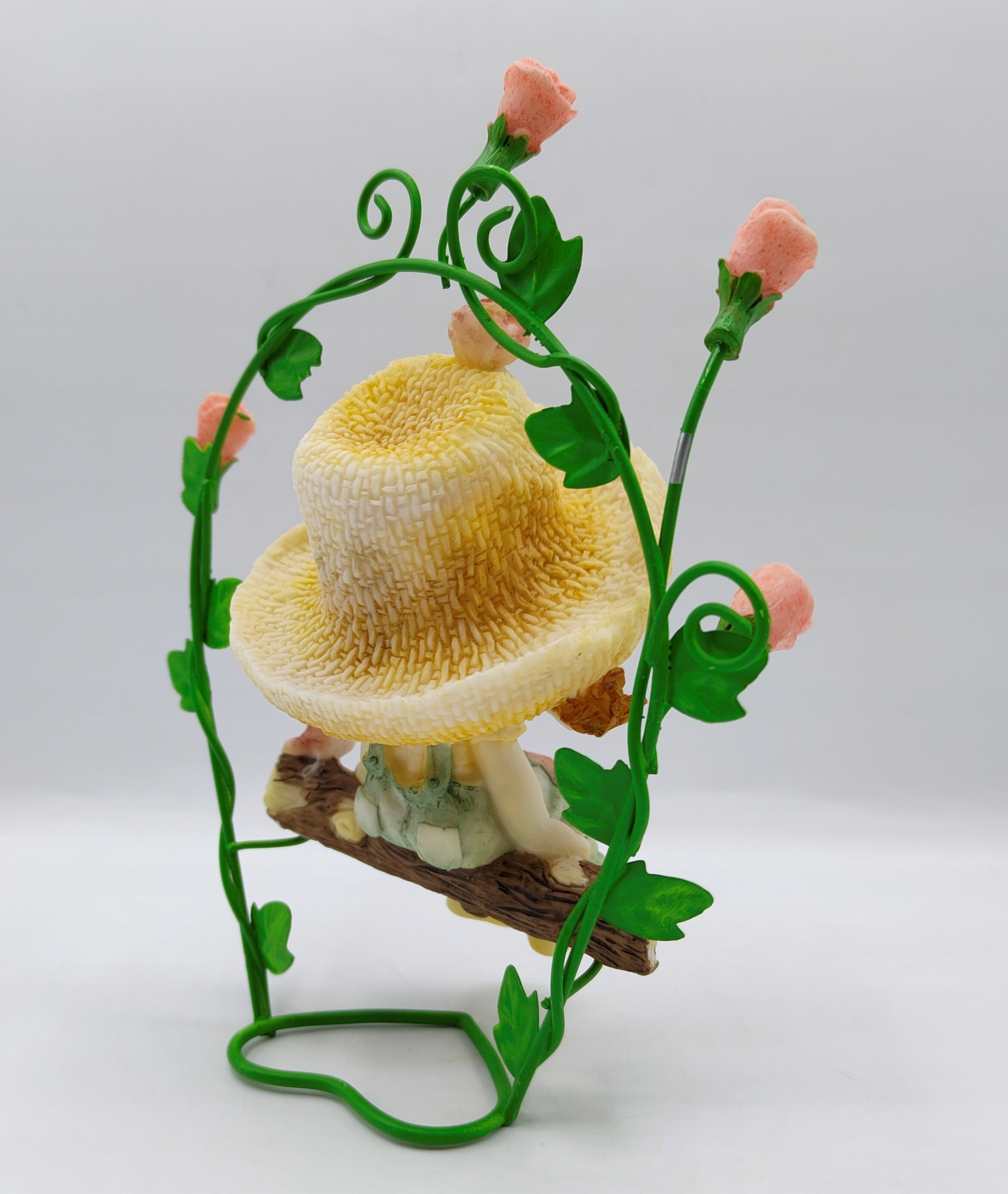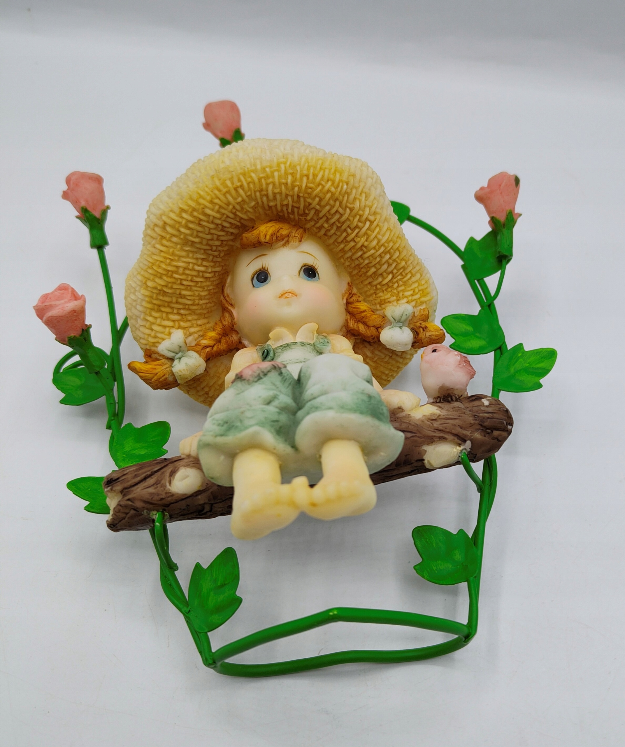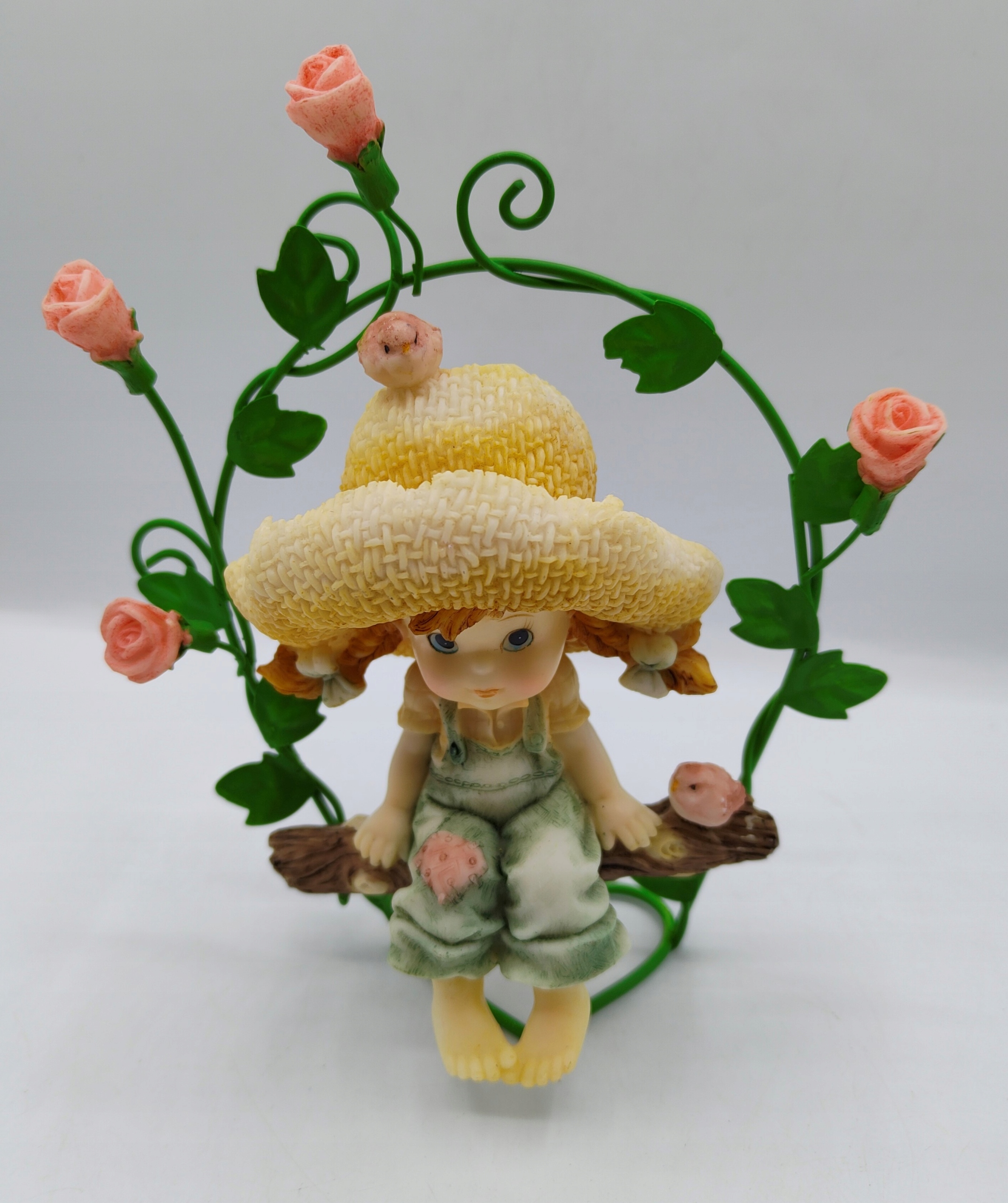 śliczna Dziewczynka w kapeluszu na ławeczce wśród Róż figurka kolekcjonerska
