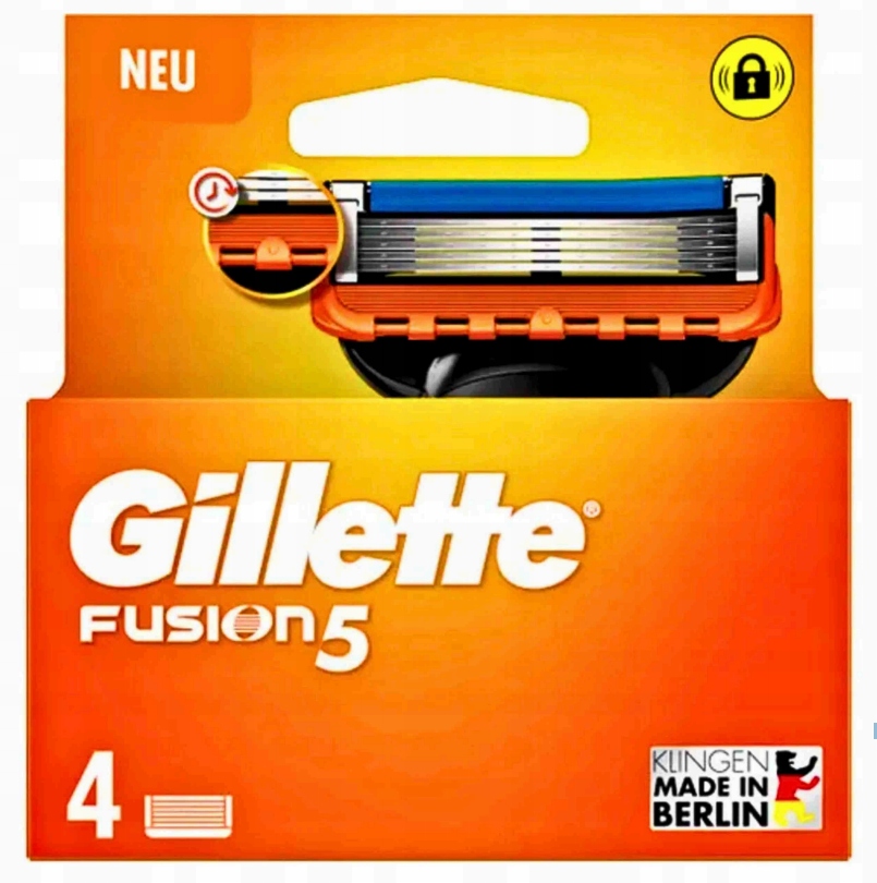 Gillette Fusion wkład zawiera pięć ostrzy golących, położonych bliżej siebie w celu obniżenia nacisku, zmniejszenia podrażnienia skóry i zwiększenia komfortu i skuteczności golenia. Z tyłu maszynki jest jeden precyzyjny nożyk, trymer wbudowany w ściankę kartridża doskonały do golenia w trudno dostępnych miejscach (pod nosem), oraz modelowania zarostu jak baczki , pod nosem, czy włosy na twarzy.