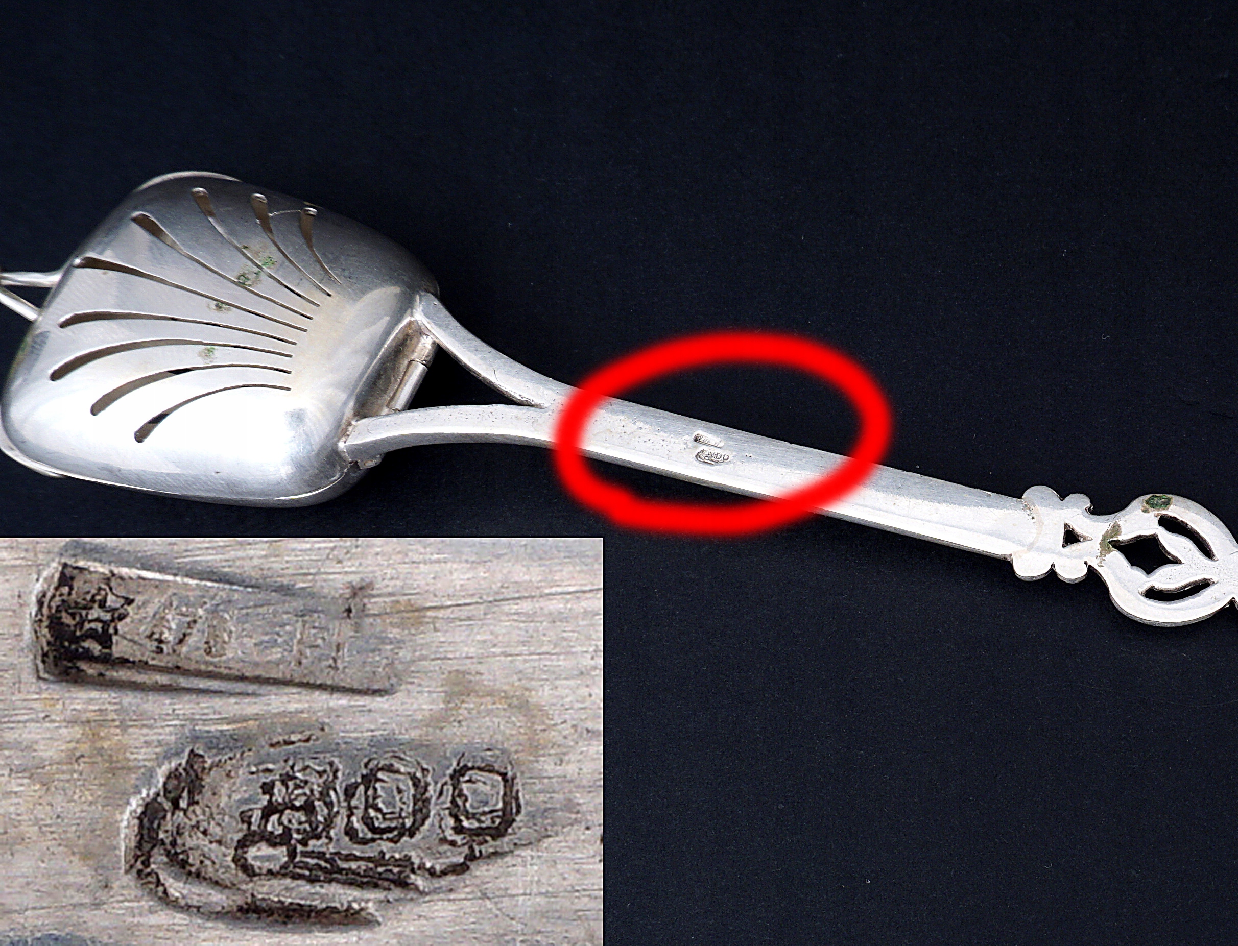 Cecha probiercza 800 i nieczytelny znak złotnika.