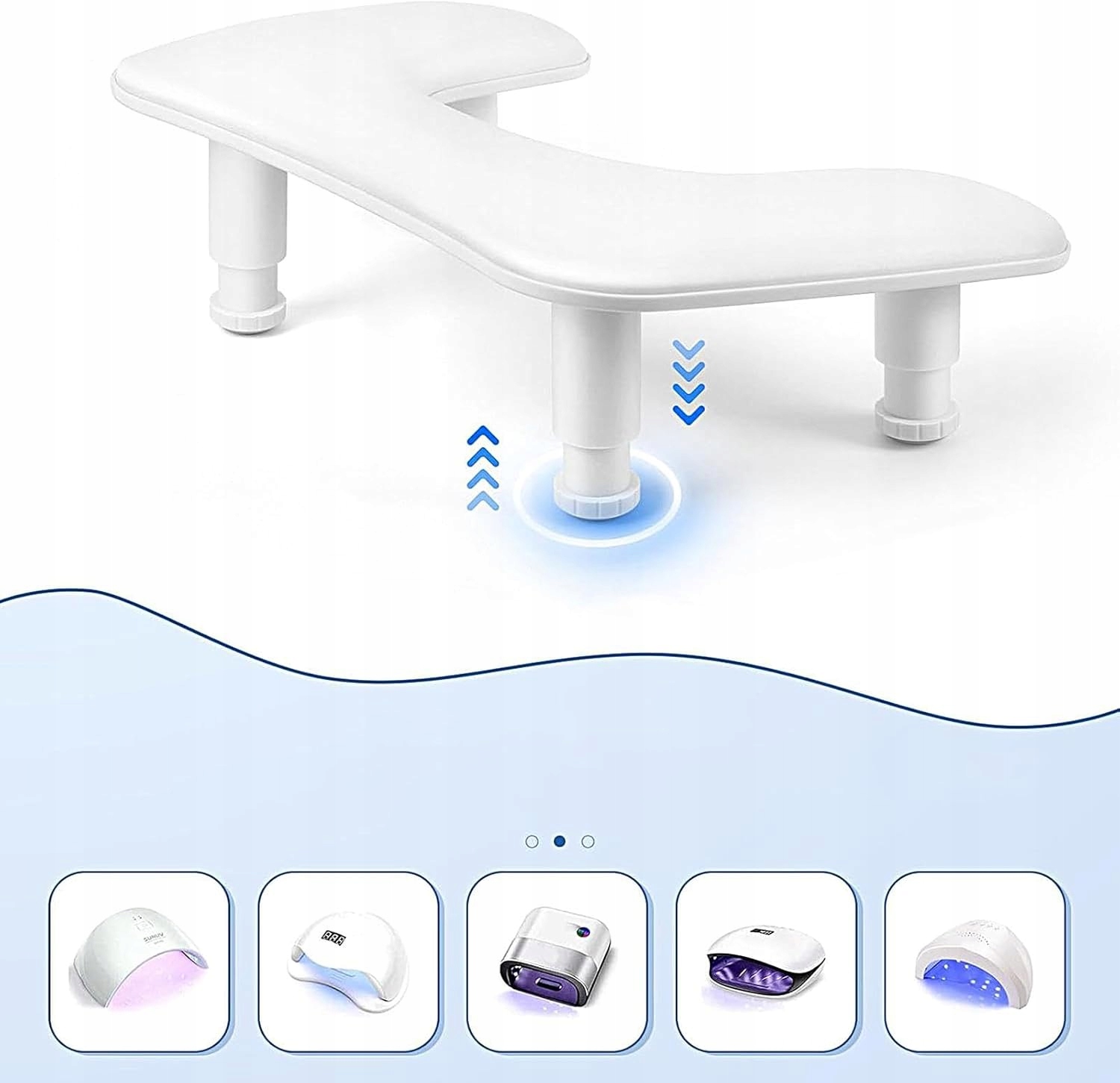 Dzięki kompaktowemu, rozkładanemu designowi, podłokietnik można łatwo przechowywać i transportować. Środkowa część umożliwia umieszczenie lampy UV, odkurzacza do paznokci lub uchwytu na telefon, dzięki czemu Twoje stanowisko pozostaje uporządkowane i funkcjonalne.
