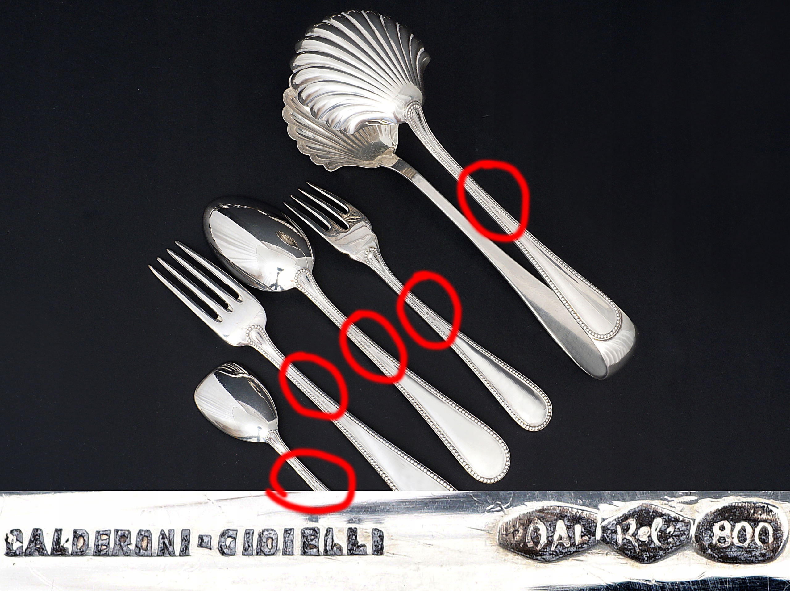 Srebro cechowane znakiem 800 i złotnika 20 AL.