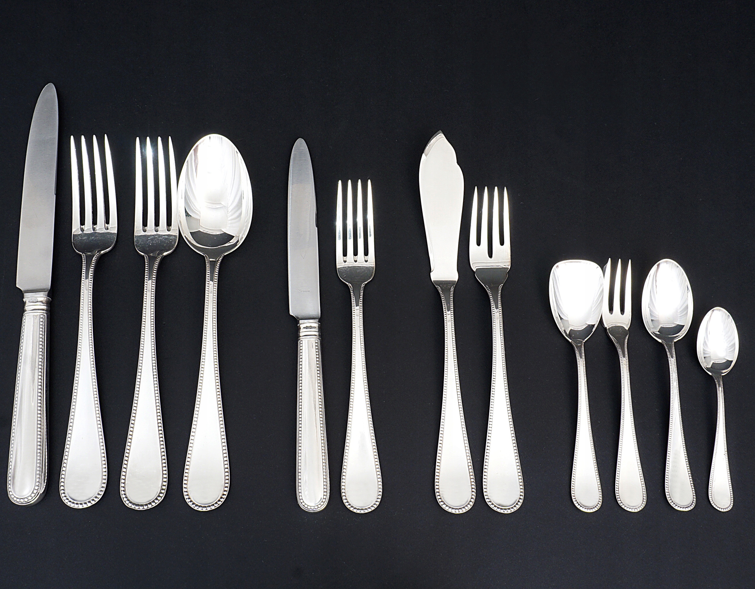 12-osobowy komplet sztućców wykonany ze srebra próby 800.