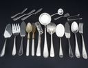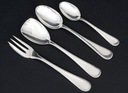 *18 części -patrz zdjęcie - 2007 gram - łyżka wazowa, sztućce do sałat, do ryb, 2 x duże szczypce serwingowe, łyżka + widelec serwingowe, łyżka do sosu, nożyk do sera i masła, sztućce do deserów, łopatka do ciasta, szczypce do curu, 2 sztuki do przystawek