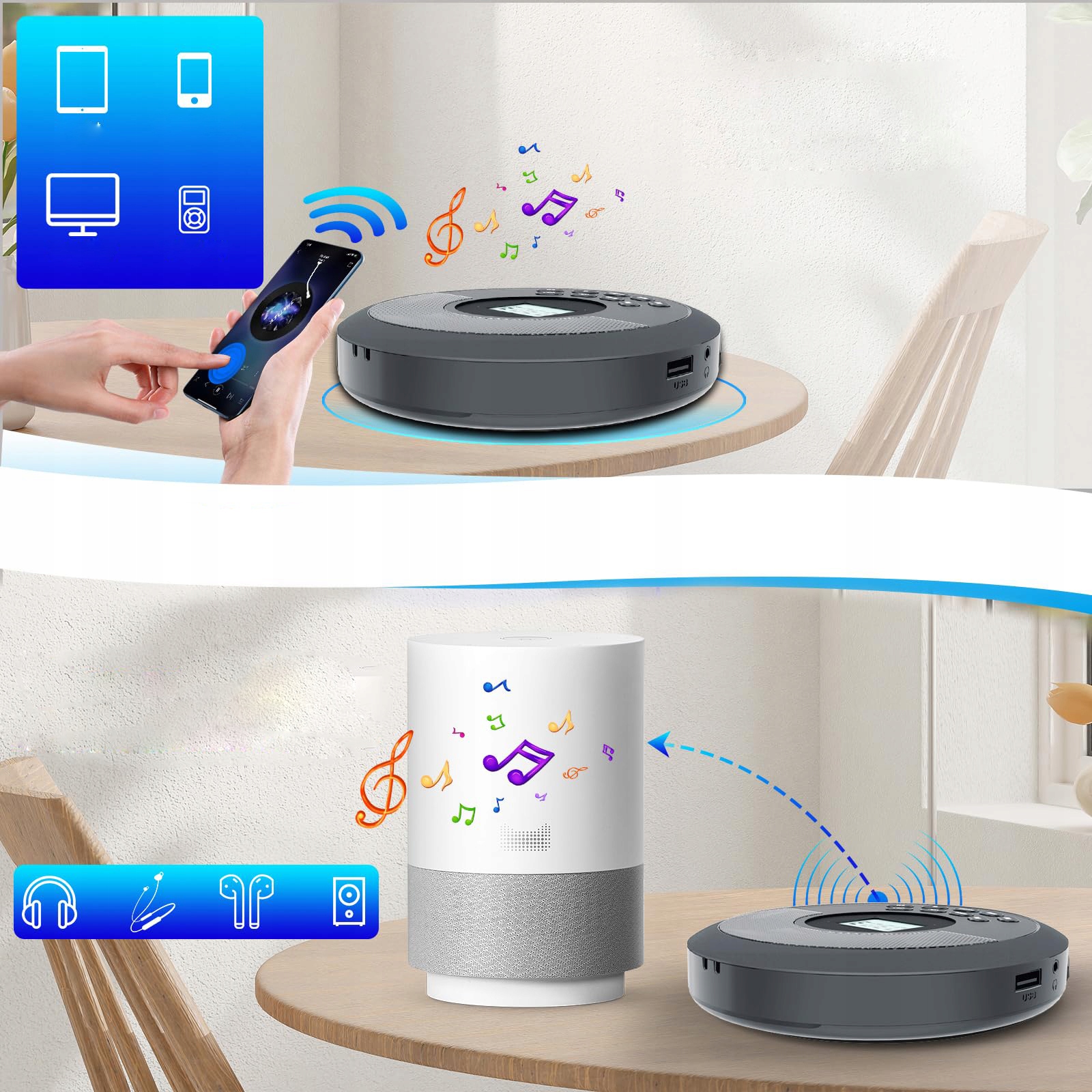 ✅【Przenośny odtwarzacz CD z transmisją i odbiorem Bluetooth】