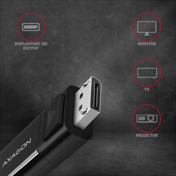 Aktywny USB-C - > DisplayPort kabel - AXAGON RVC-DPC adapter do podłączenia DisplayPort monitora/telewizora/projektora do laptopa lub telefonu poprzez złącze USB-C.