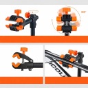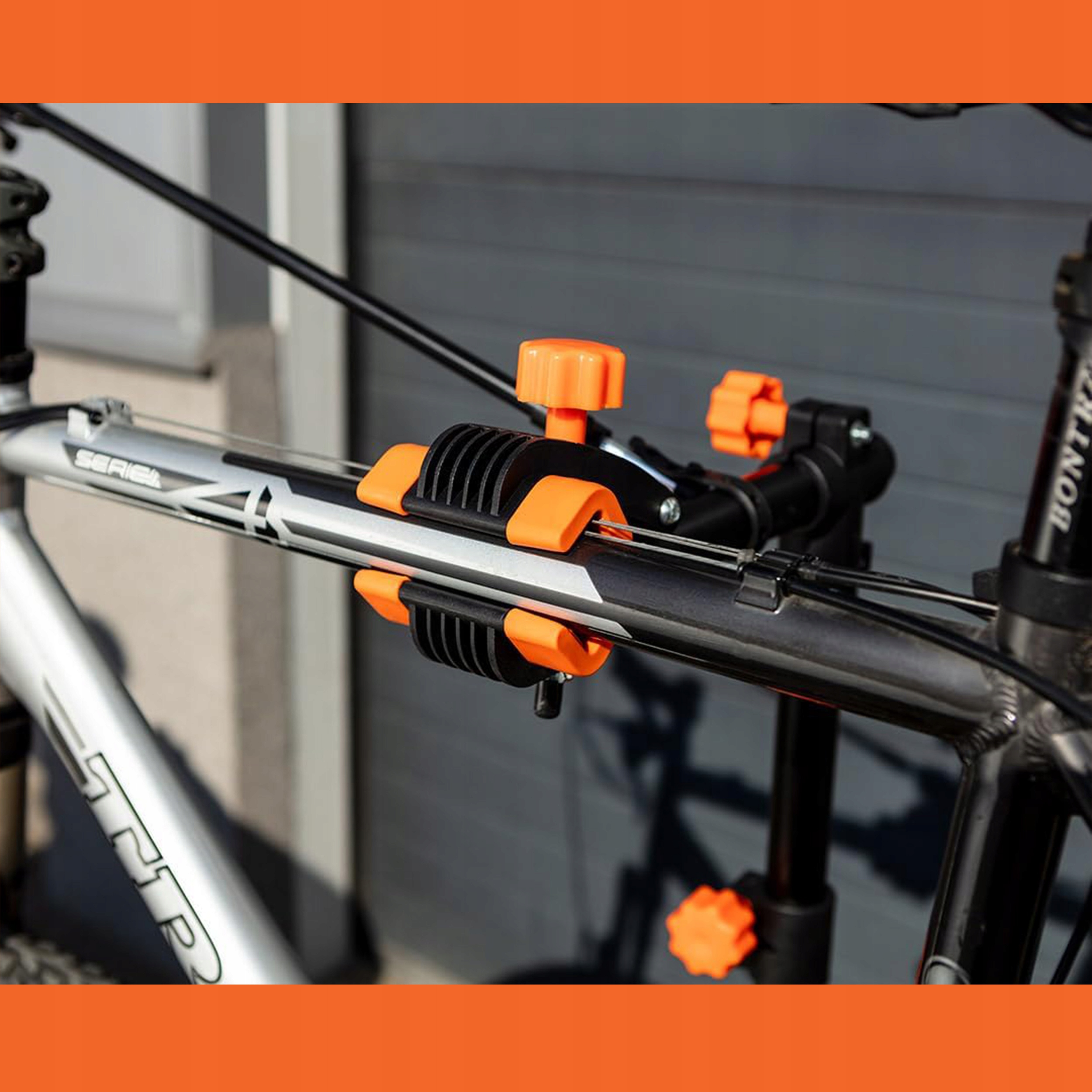 Zakres regulacji zacisku od 25 do 55 mm pozwala bezpiecznie zamocować większość ram rowerowych dostępnych na rynku. Solidny mechanizm zacisku utrzymuje rower w jednej pozycji bez ryzyka obrotu czy zsunięcia, nawet przy większym obciążeniu.