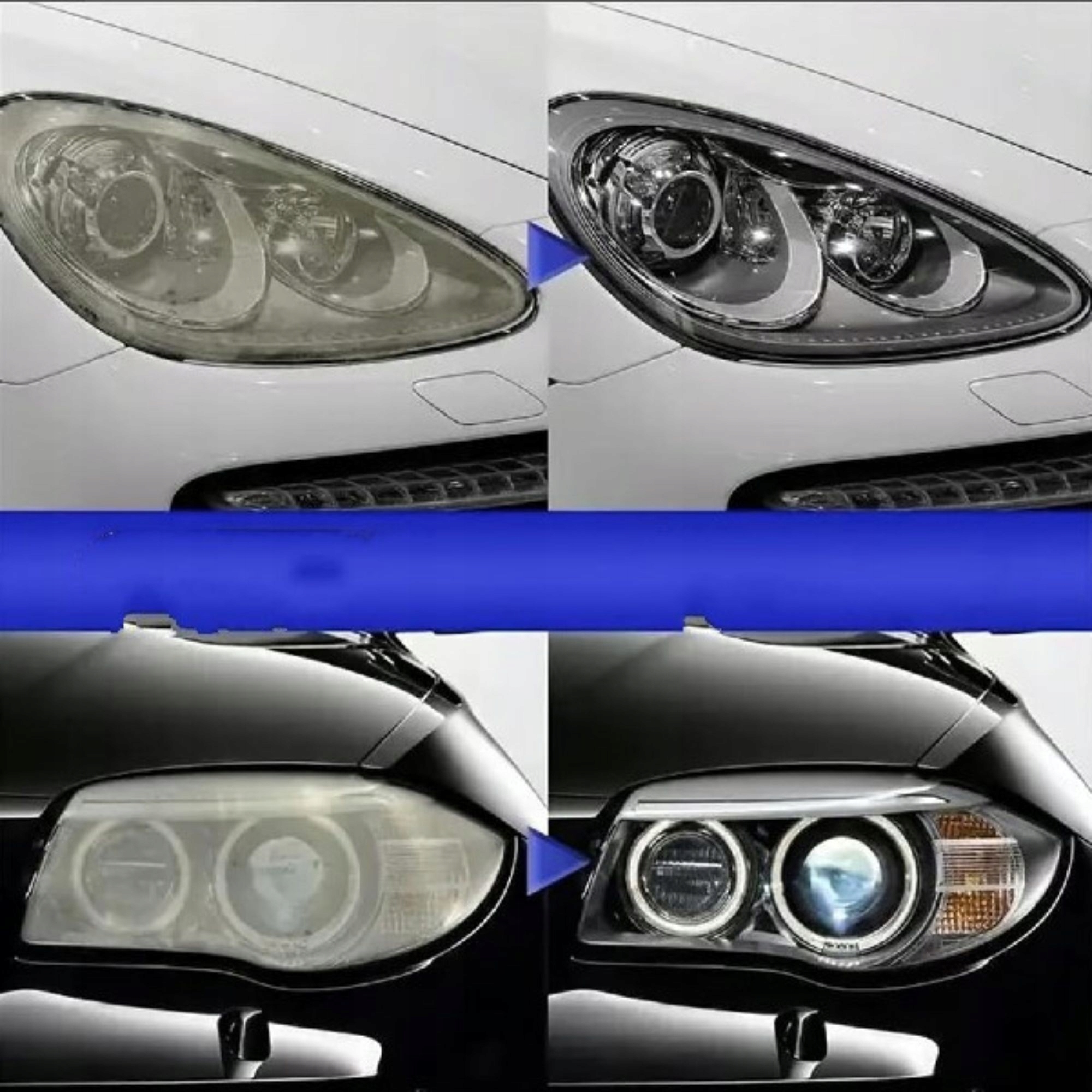 Skutecznie usuwa żółknięcie, zarysowania, utlenianie i matowość, poprawiając wygląd reflektora.