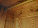 Ślady po kornikach. Mebel zaimpregnowany preparatem przeciw kornikom. Brak aktywnego kornika.