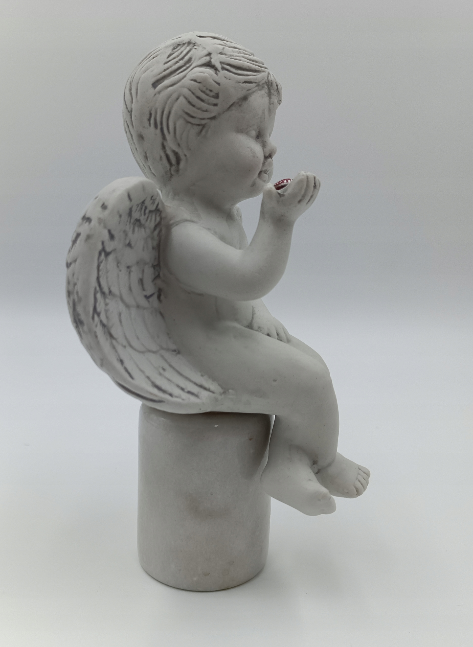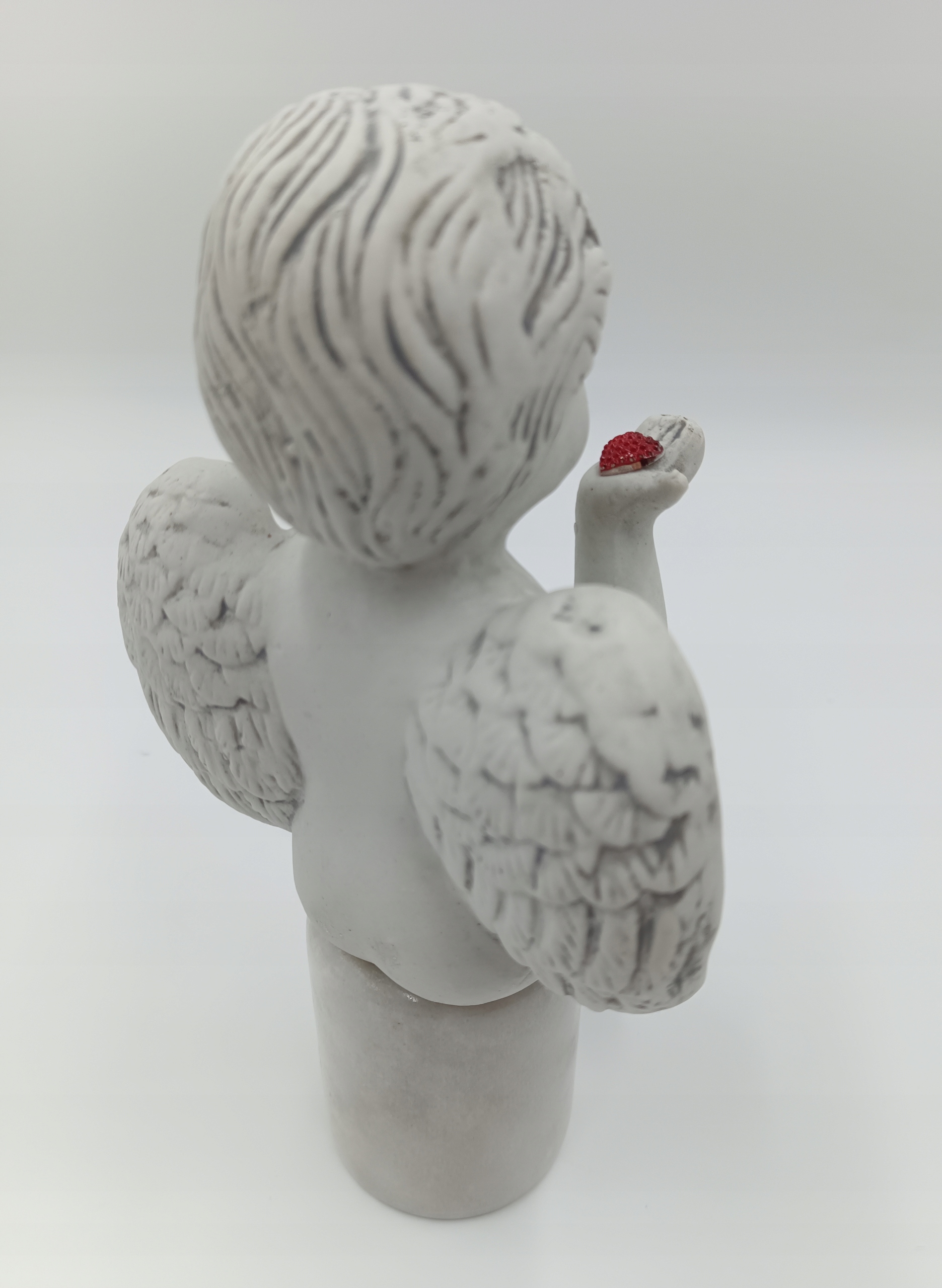 Figurka wykonana z ceramiki (wewnątrz pusta) - bardzo ładna. Anioł trzyma na dłoni czerwone serduszko. Idealna na prezent - zdjęcia odzwierciedlają rzeczywistość POLECAM !