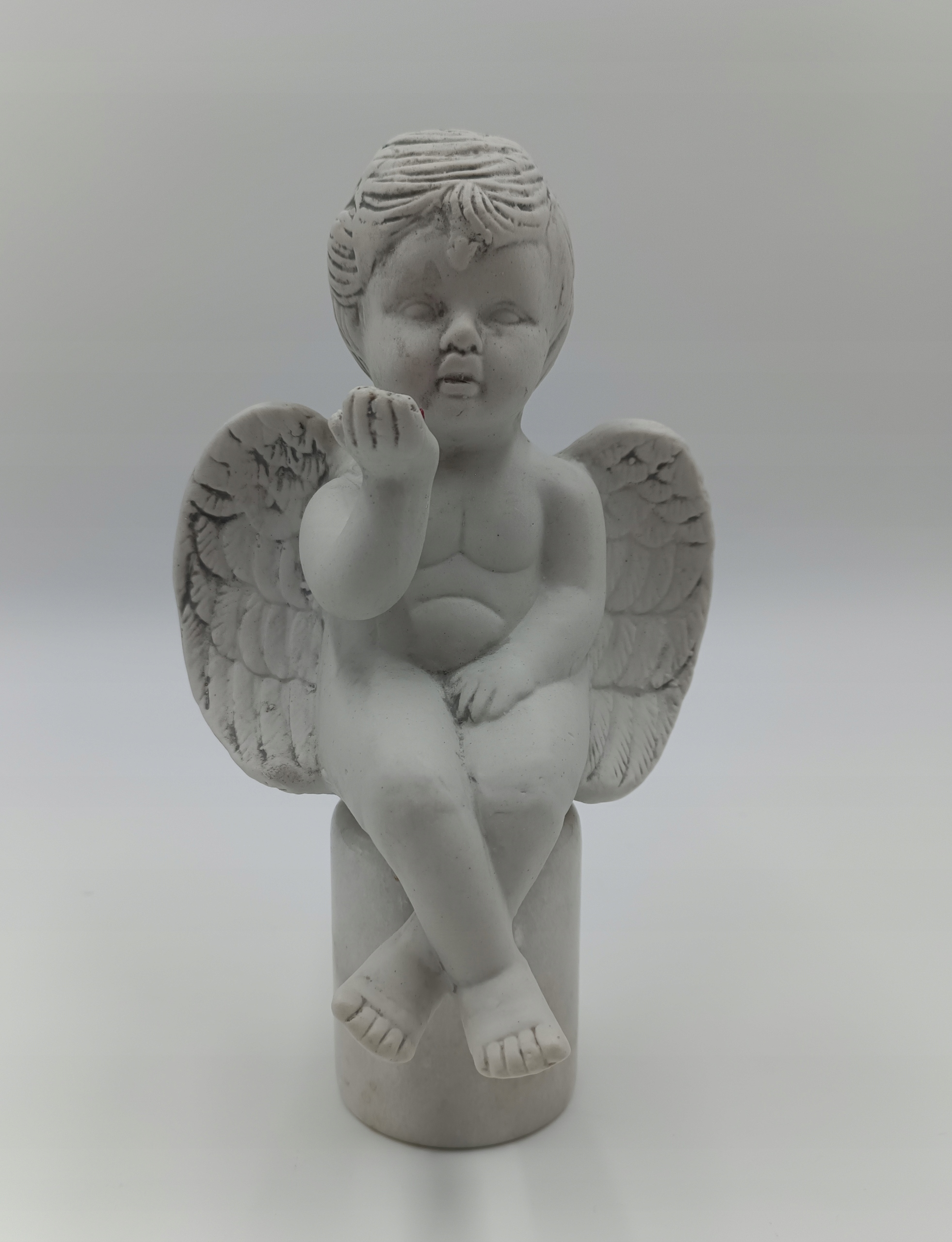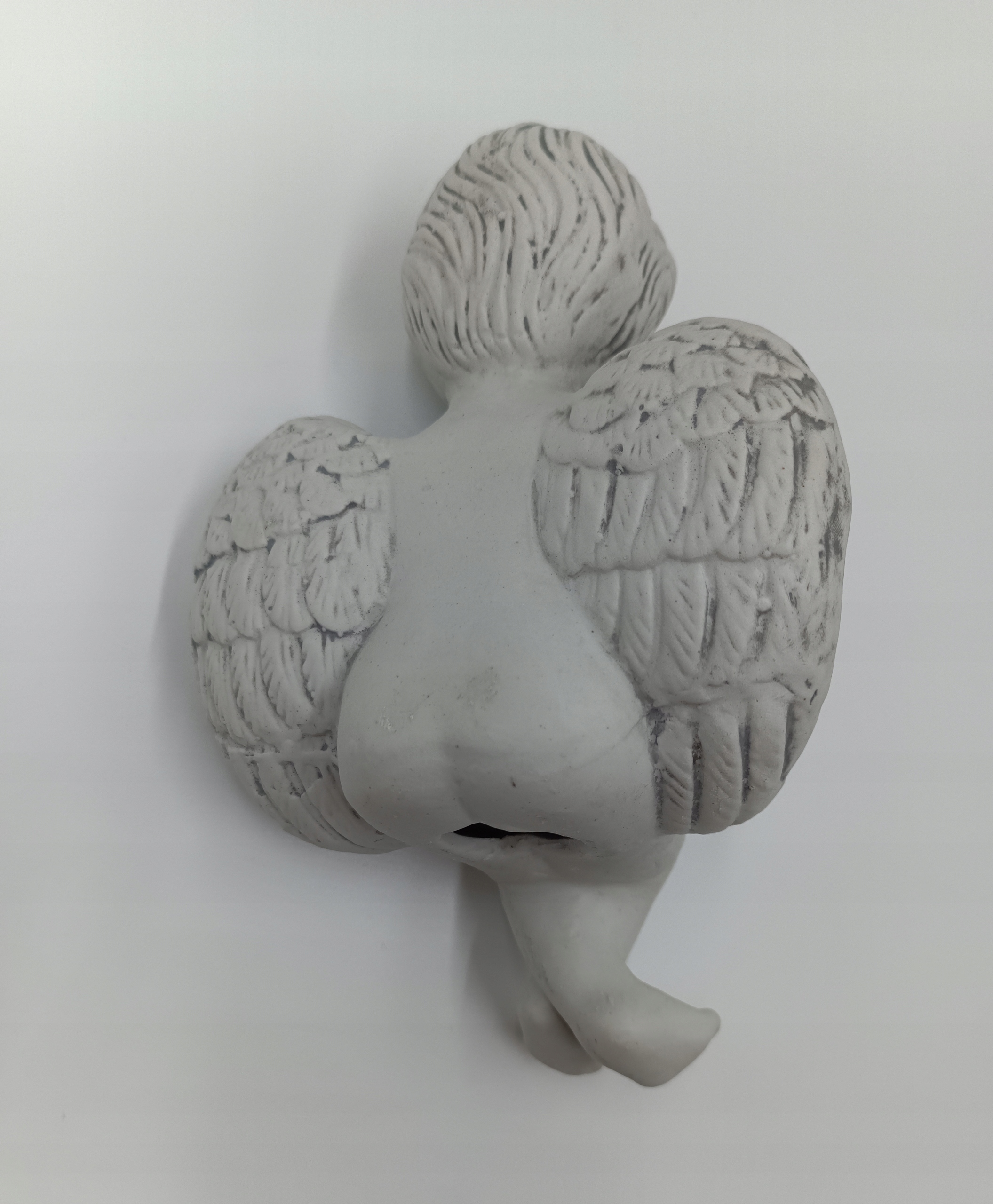 *Aniołek do postawienia na krawędzi półki, parapetu, nóżki powinny mu zwisać ;) Szara podstawka na której siedzi nie jest przedmiotem sprzedaży, to tylko rekwizyt do zdjęć*
