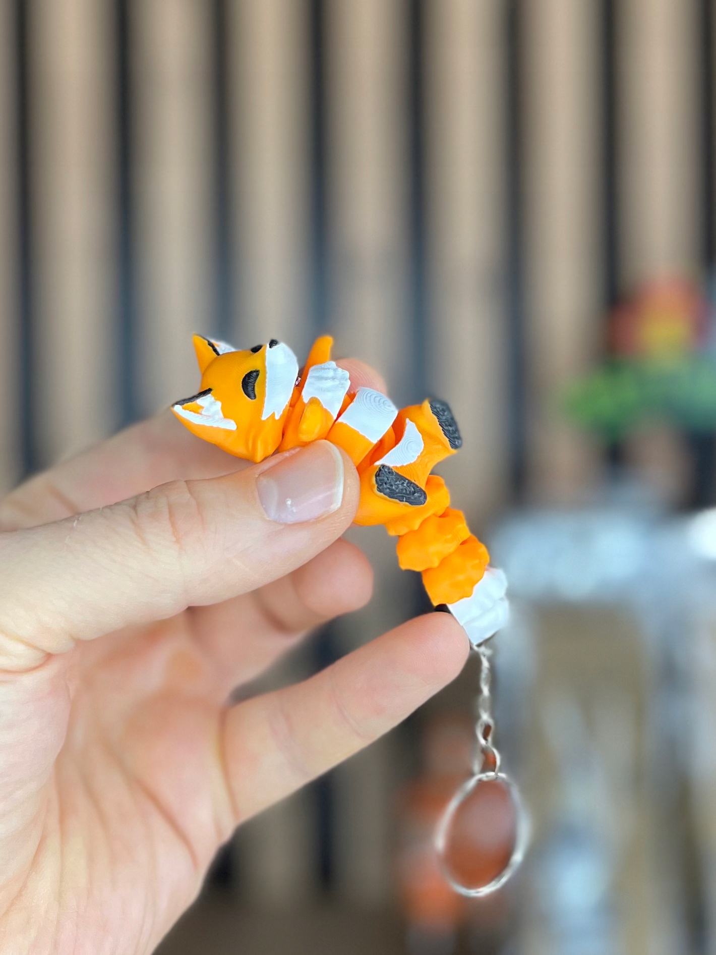 Z puszystym ogonem, sterczącymi uszami i figlarnym uśmiechem, przenosi leśny urok prosto na Twoje palce. Doskonale sprawdzi się jako brelok, towarzysz na biurku lub gadżet antystresowy. Figurka, który równie dobrze trzyma się w dłoni jak i przy plecaku czy kluczach.