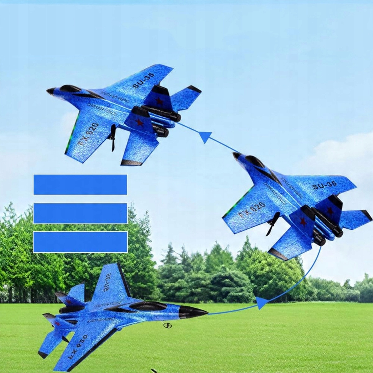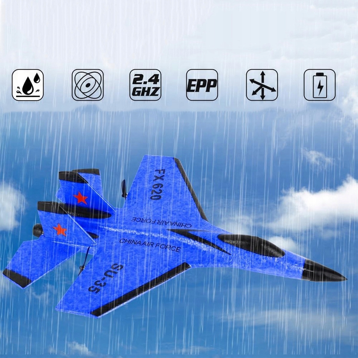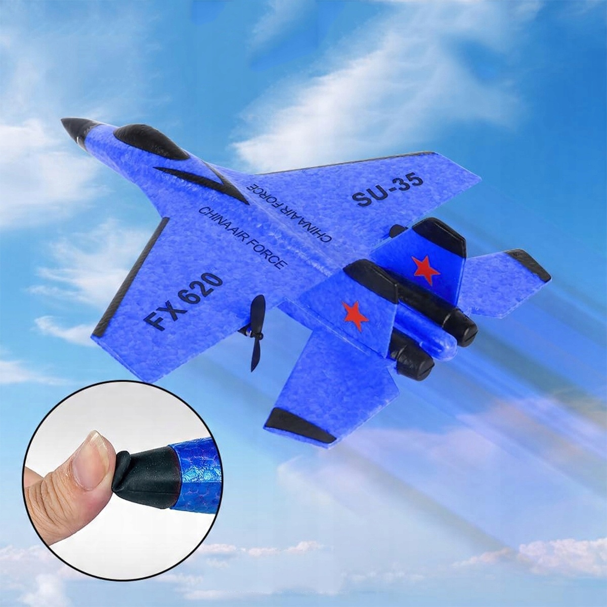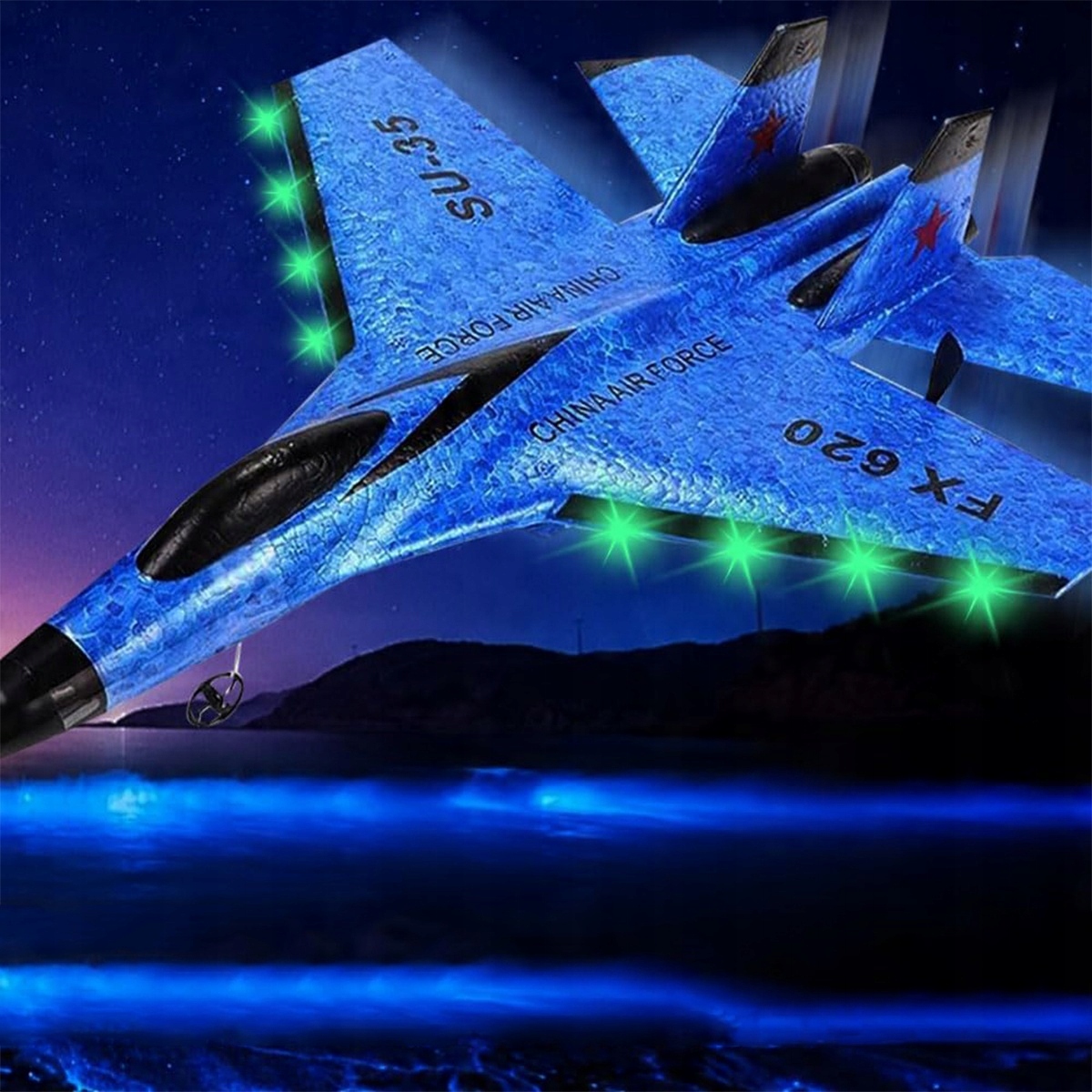 Samolot RC 2CH Zdalnie sterowany SU35 Myśliwiec 2.4GHz Samolot RC RTF dla początkujących, dzieci i dorosłych, FX620 Samolot Zabawka z kolorowymi światłami Ładowanie USB (niebieski)
