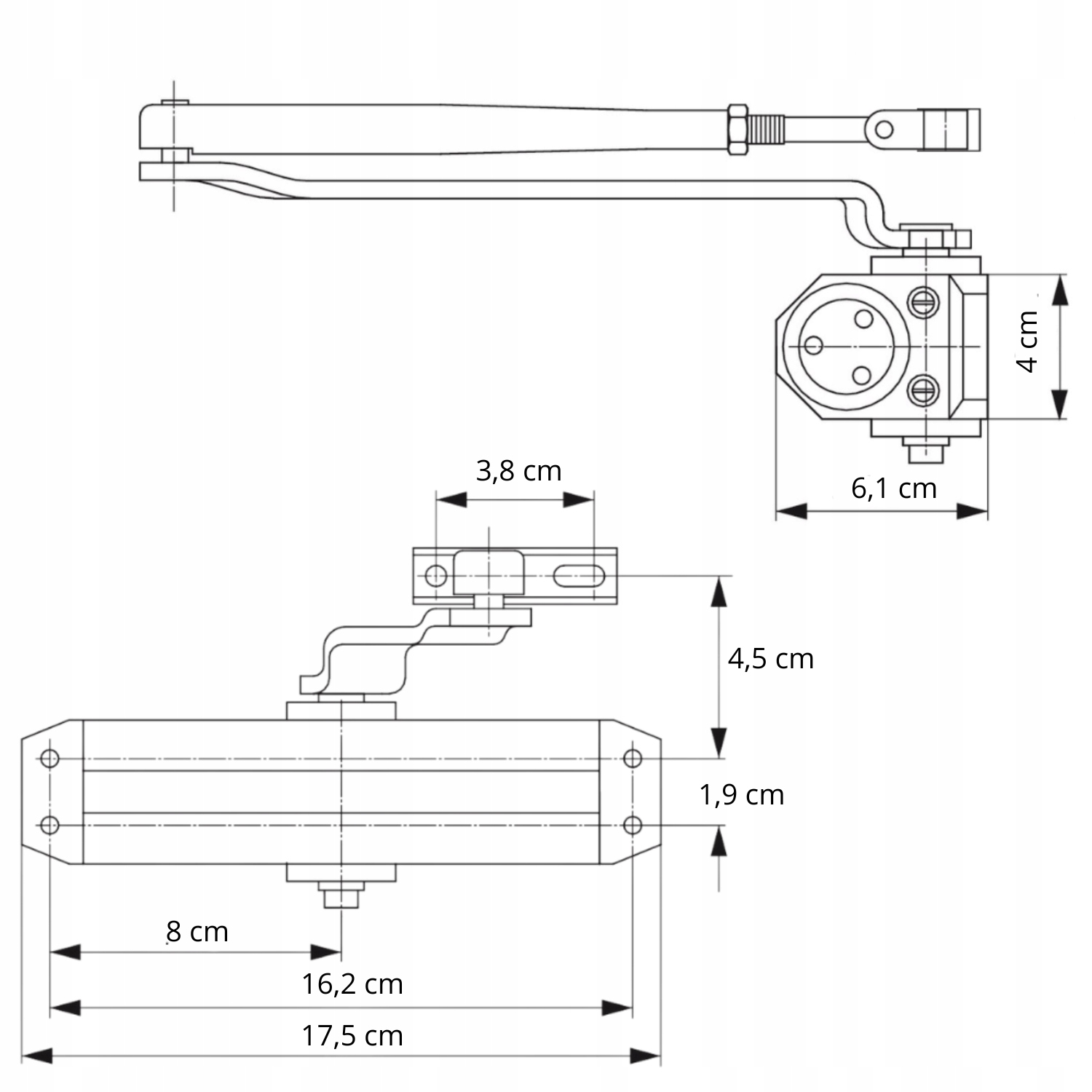 Produkt został wykonany z aluminium. Dzięki temu jest wytrzymały, a materiał zapobiega odkształcaniu się ramienia samozamykacza – drzwi będą sprawnie się poruszać, nawet podczas gwałtownych ruchów. Produkt możesz wyregulować, dzięki czemu zabezpieczysz pomieszczenie przed przeciągami.
