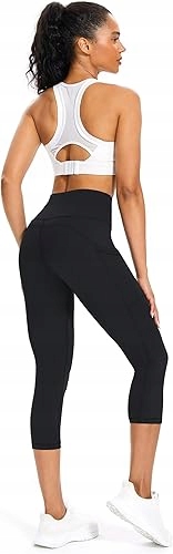 Damskie legginsy 3/4 z wysokim stanem, oddychające, odprowadzające wilgoć, elastyczne i przyjazne dla skóry. Dodatkowo, dopasowany klin w kroku ze szwami zapewnia swobodę ruchów i redukuje tarcie, dzięki czemu te legginsy sportowe to idealne spodnie do jogi z kieszeniami dla kobiet na trening lub sport.