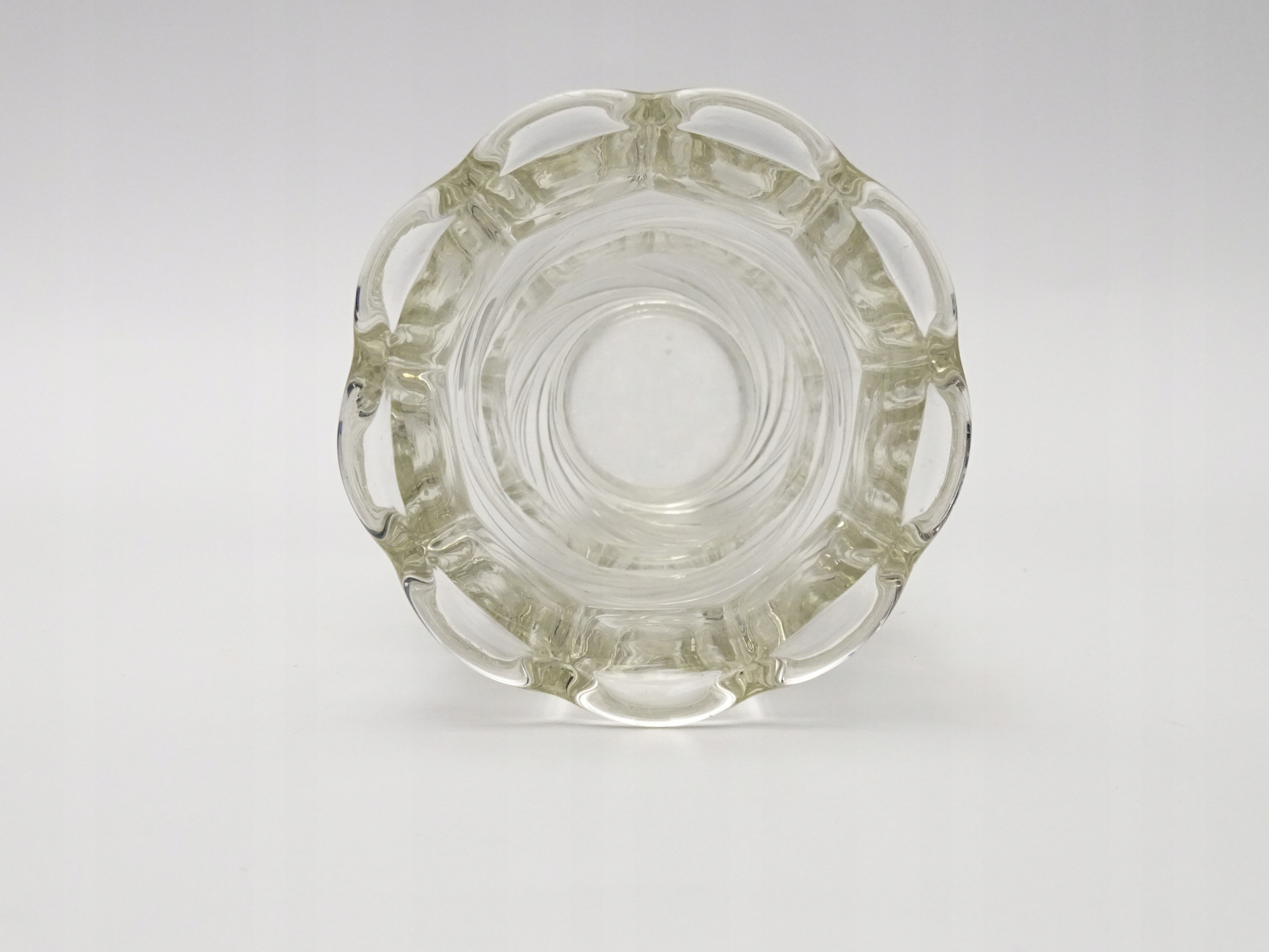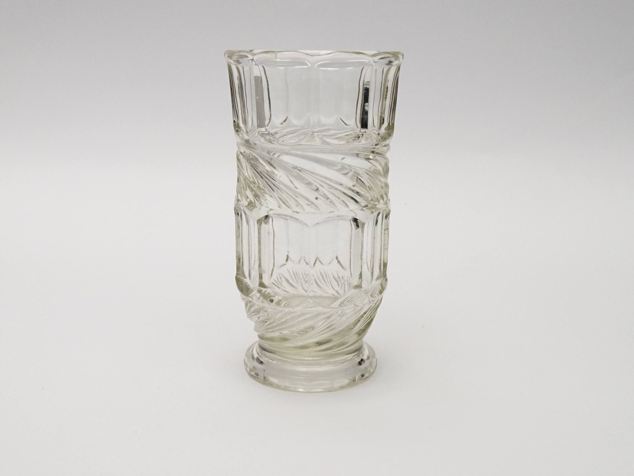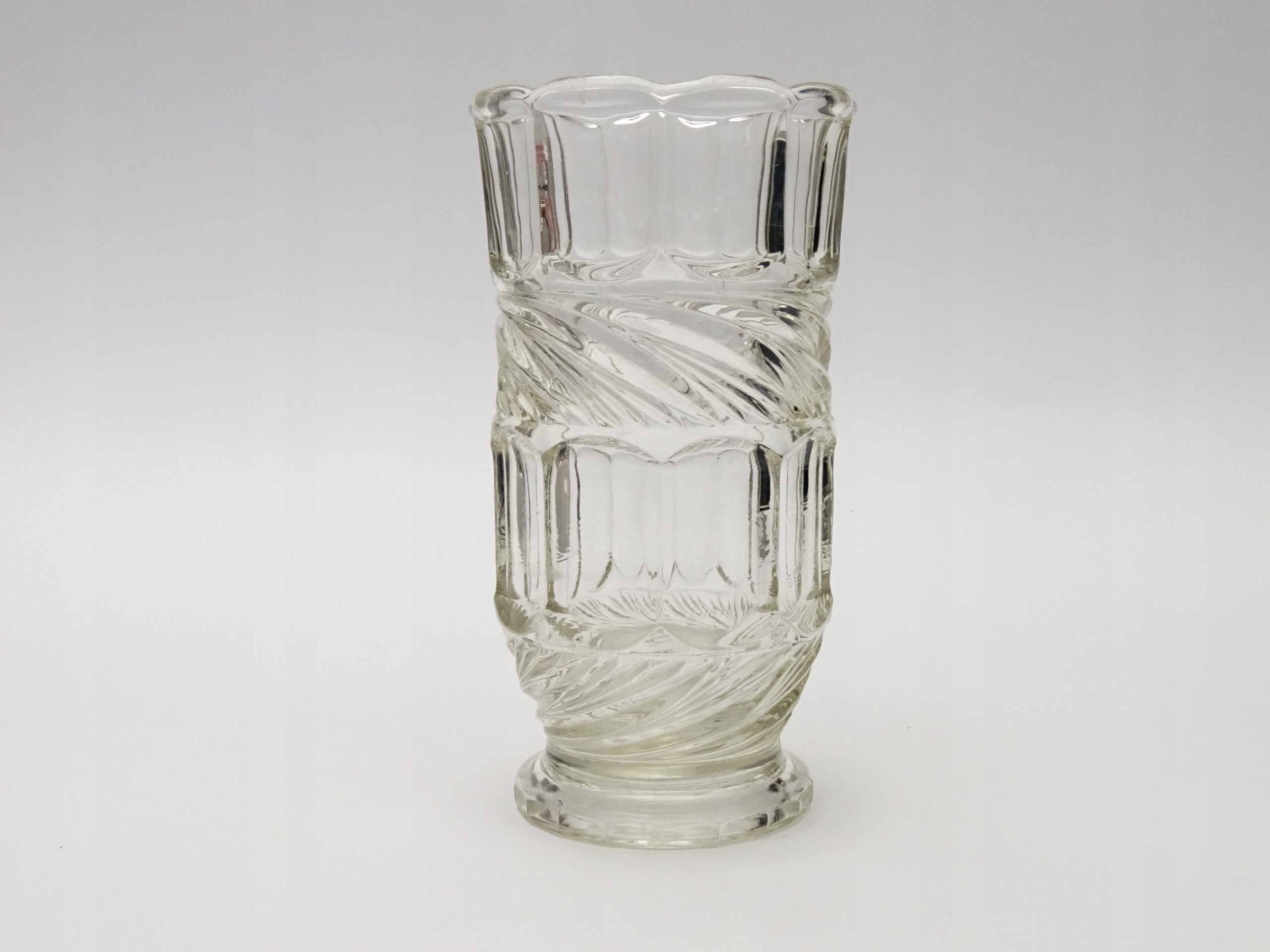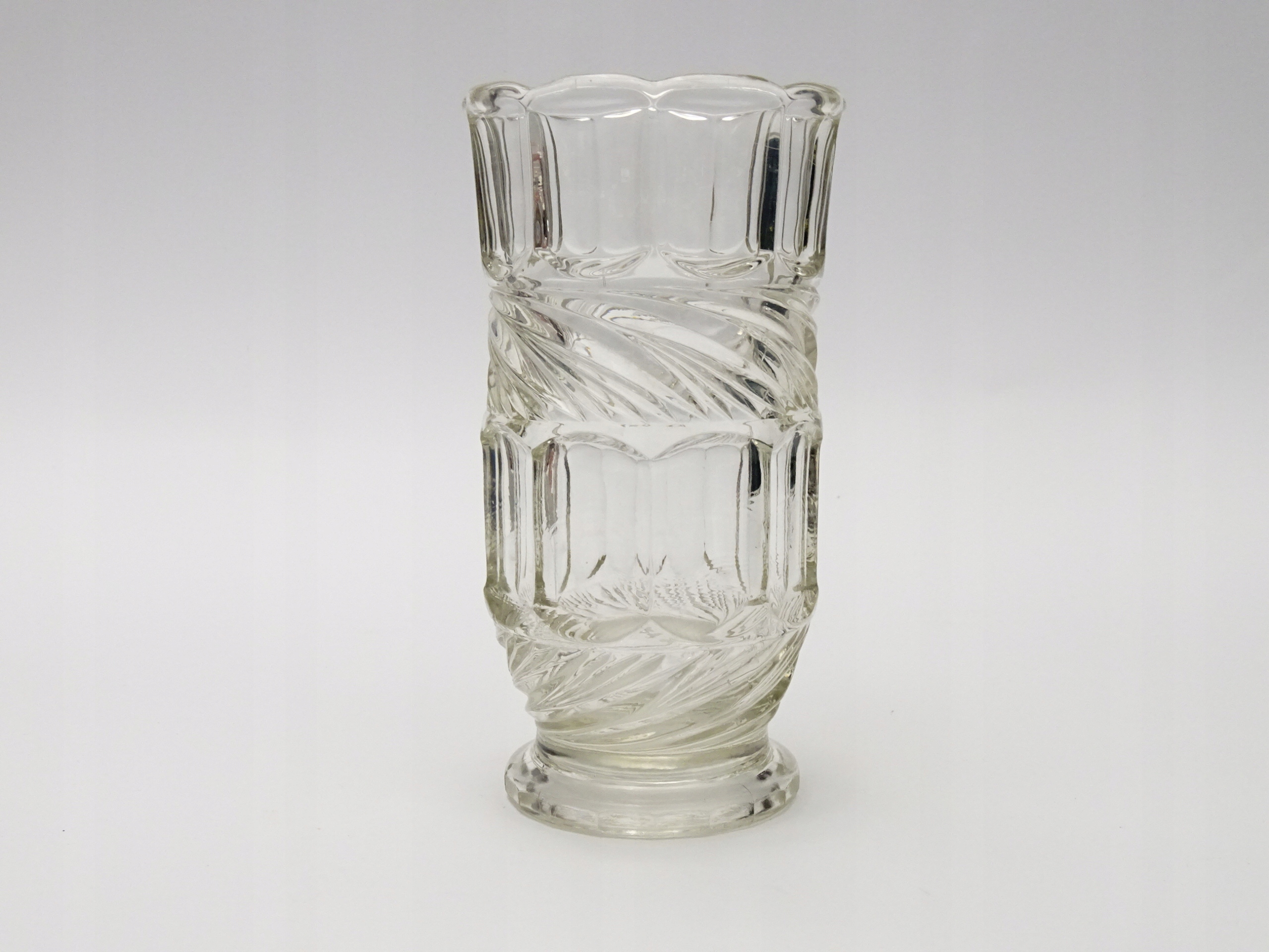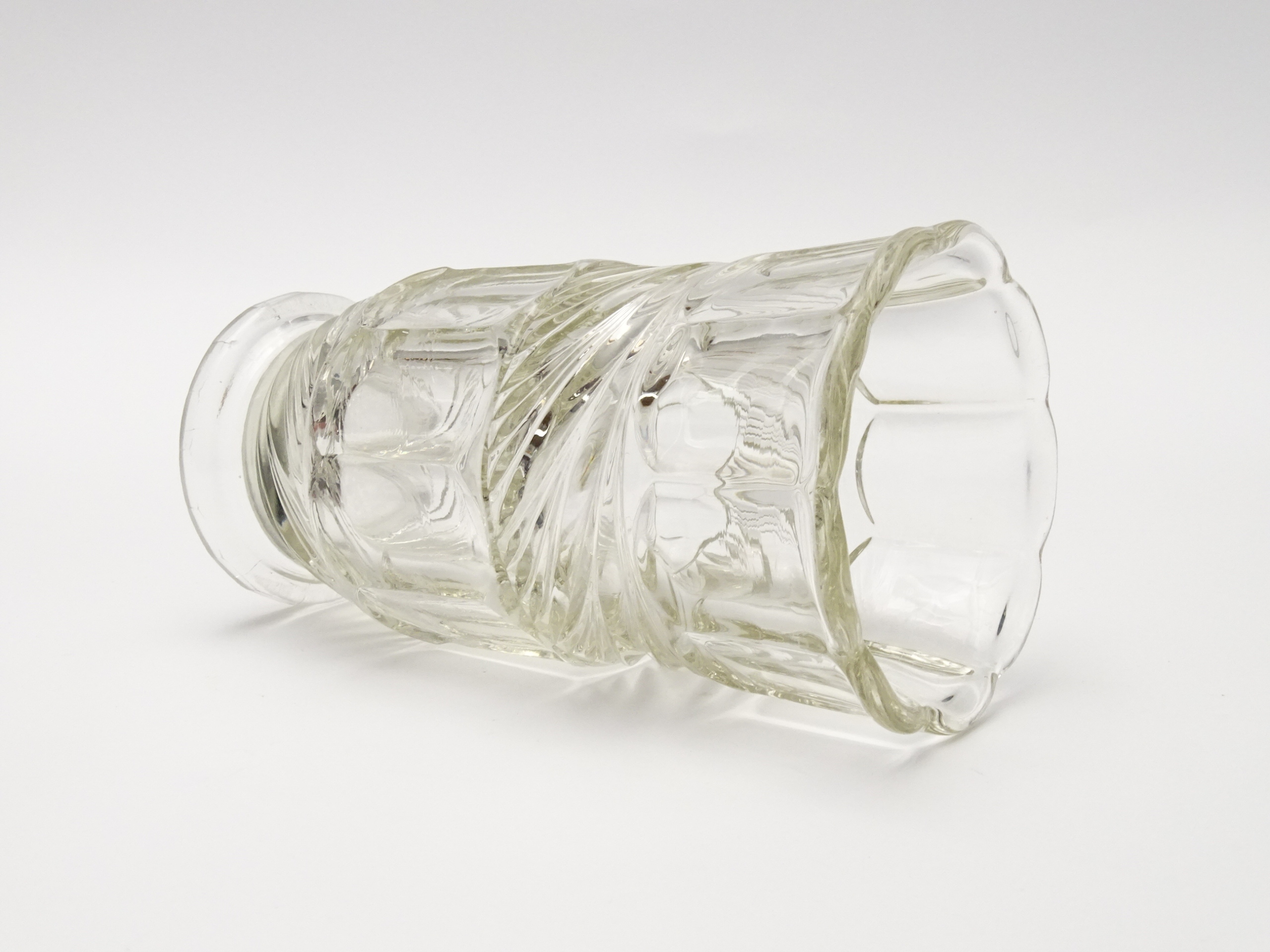 Zabytkowy wazon z grubego, prasowanego szkła.