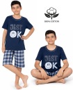 Koszulka z krótkim rękawem posiada dekolt wykończony lamówką w kolorze spodni oraz ozdobny, nadruk. Spodnie do kolan z nieuciskającą gumą.