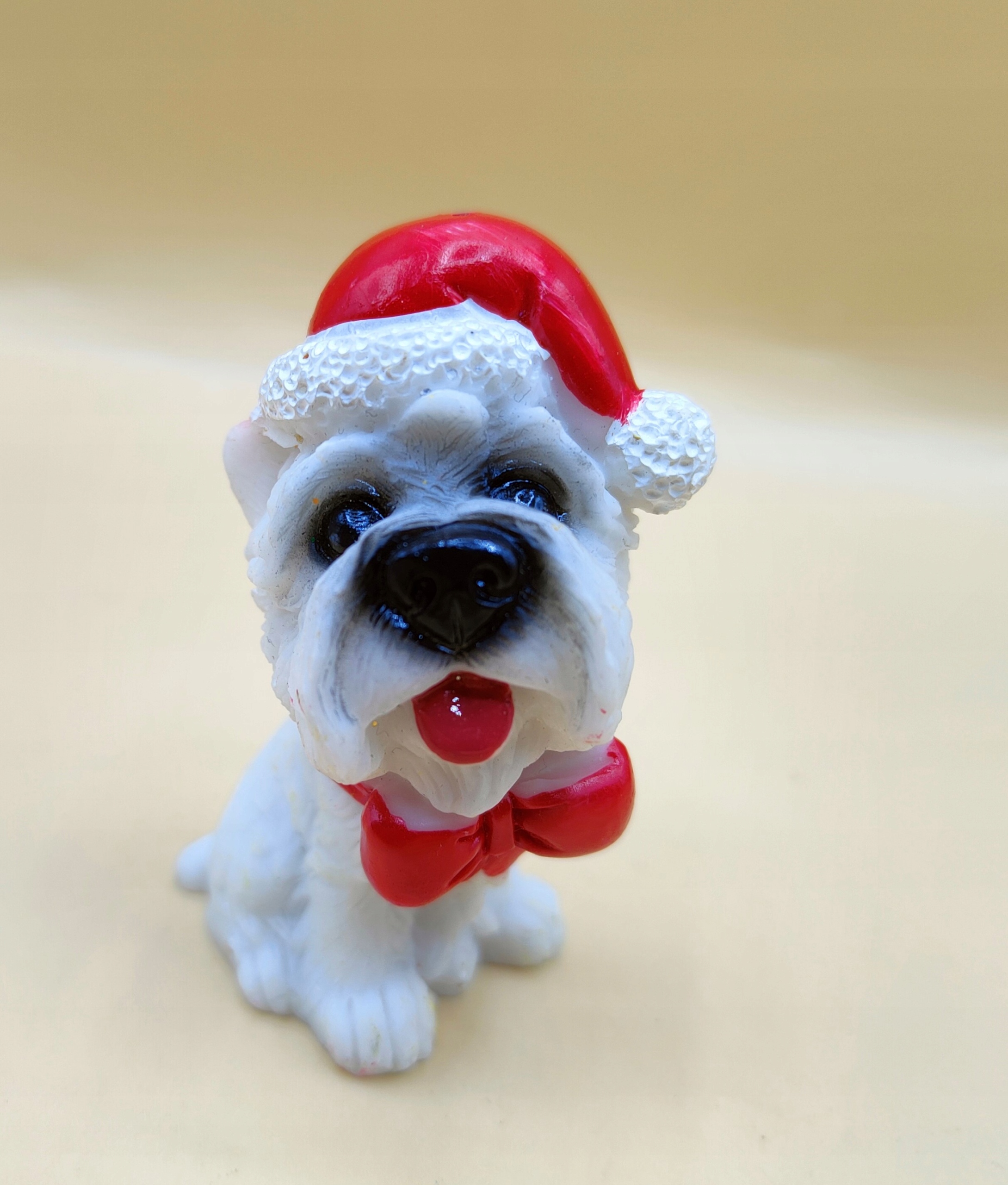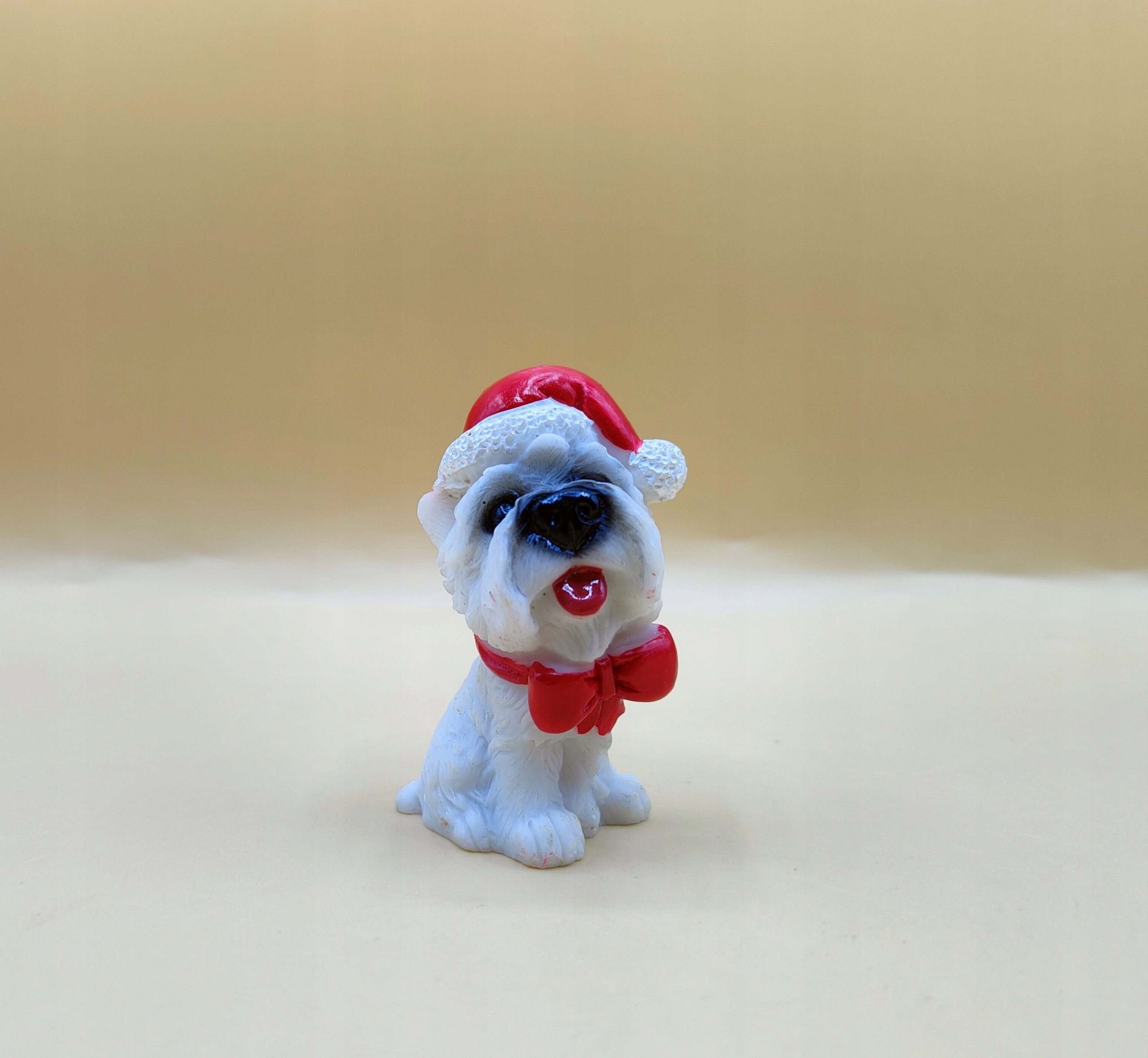 Śliczny PIES z kokardką i w czapeczce MALTAŃCZYK.