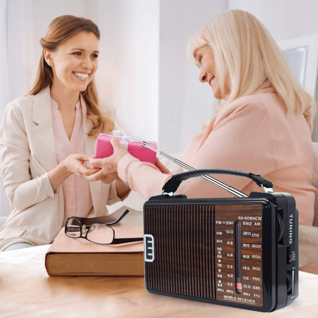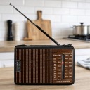 Trójzakresowe radio przenośne w stylu retro łączy ponadczasowy wygląd z praktyczną funkcjonalnością.