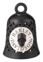 Nowy, oryginalny dzwoneczek szczęścia Harley-Davidson Ride Bell z efektownym motywem srebrnej czaszki oraz napisem logo. Klasyczne czarne wykończenie nadaje mu surowy, customowy charakter, idealnie pasujący do motocykli Harley-Davidson.