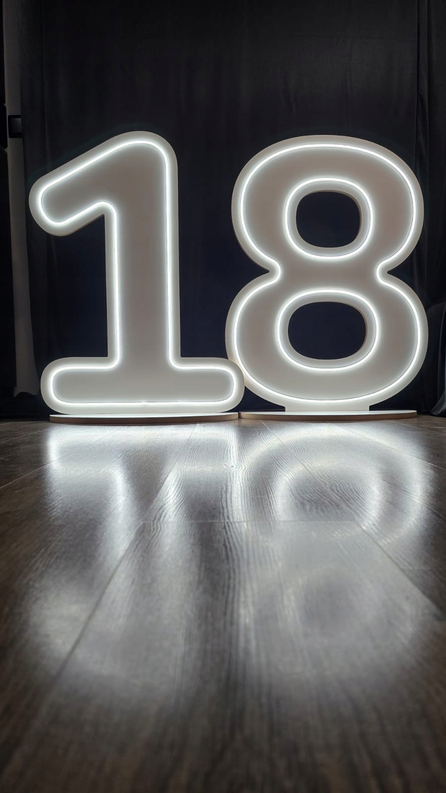 Cyfry wysokości 91 cm wykonane są z laminowanej płyty MDF o grubości 18 mm. Oświetlenie led z regulacją intensywność świecenia.