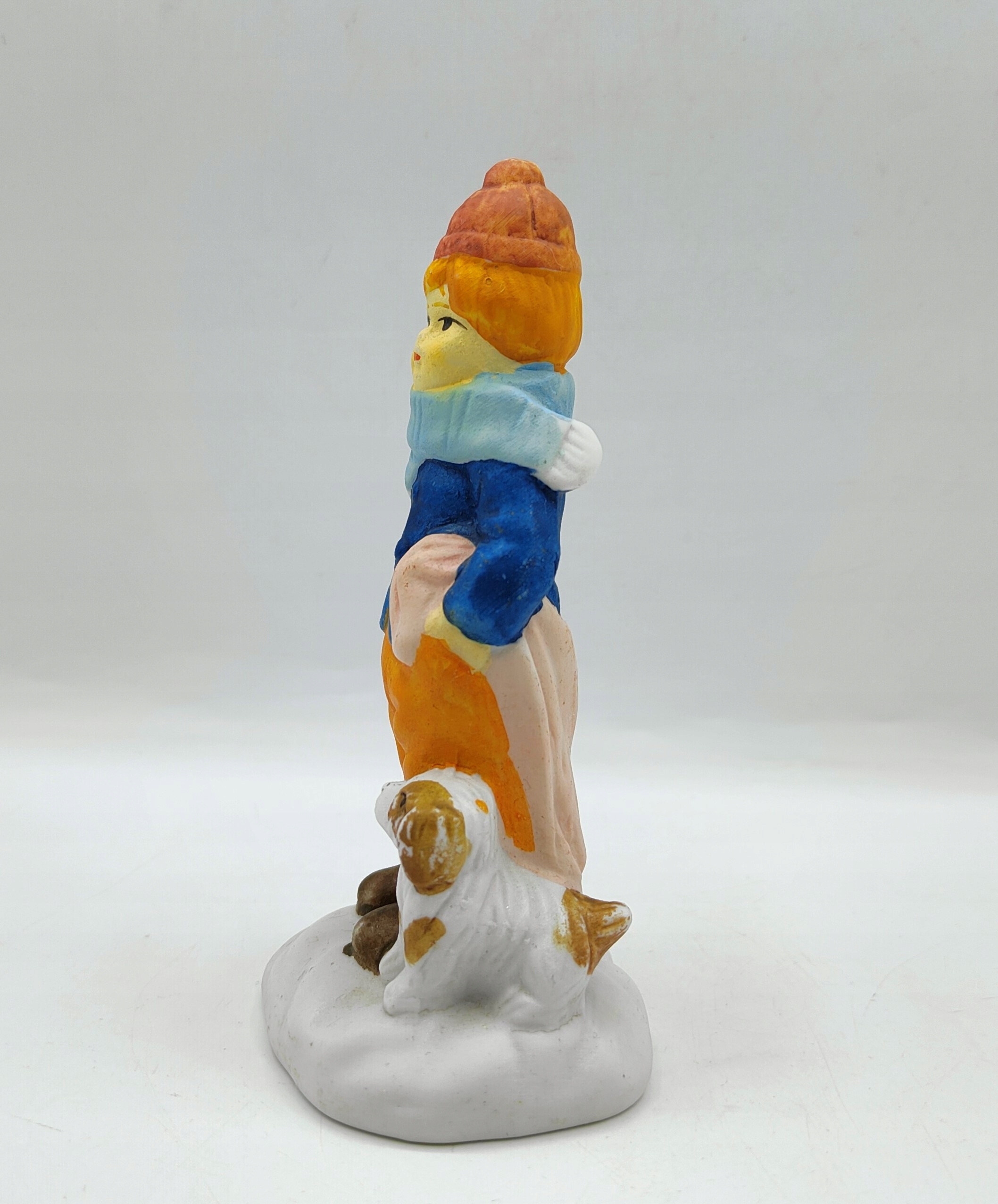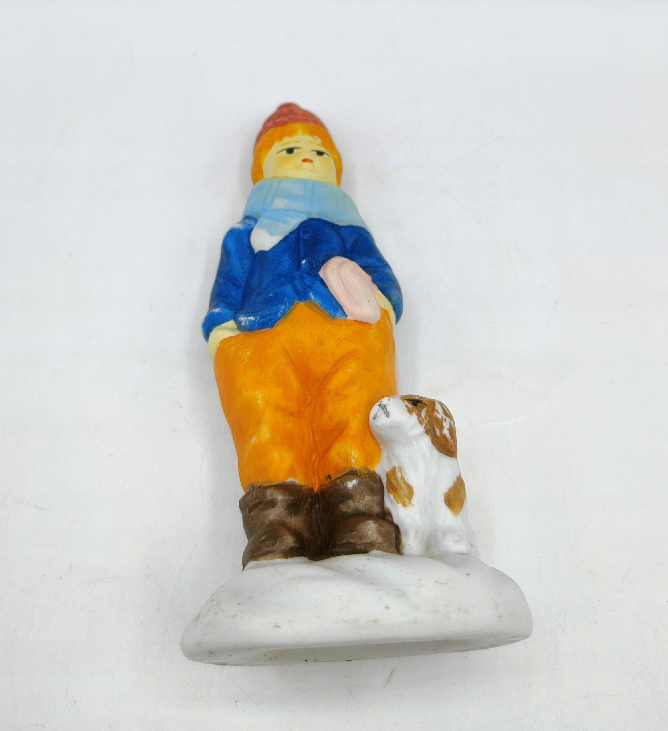 Chłopczyk na zimowym spacerku z pieskiem 13cm, stara kolekcjonerska figurka z porcelany