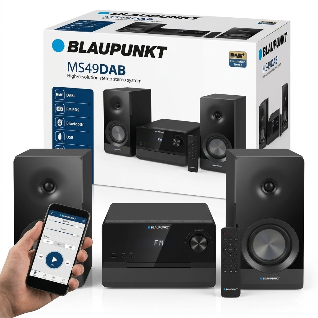 Blaupunkt MS49DAB to mikrowieża zaprojektowana z myślą o użytkownikach, którzy chcą jednego, uniwersalnego urządzenia do słuchania radia i odtwarzania muzyki. Konstrukcyjnie bazuje na sprawdzonych rozwiązaniach znanych z modelu MS40.2BT, ale mikrowieża została uzupełniona o radio cyfrowe DAB+ oraz rozbudowany system antenowy, który realnie wpływa na jakość odbioru.