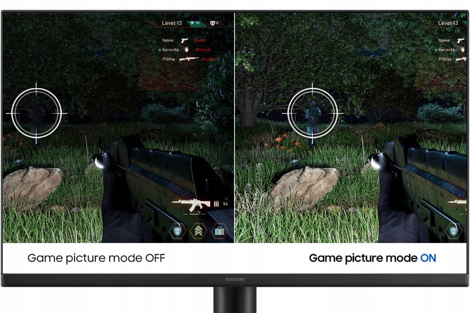 ➡️ Tryb Gry – natychmiast dostosowuje kolory i kontrast, aby ujawnić ukrytych wrogów.