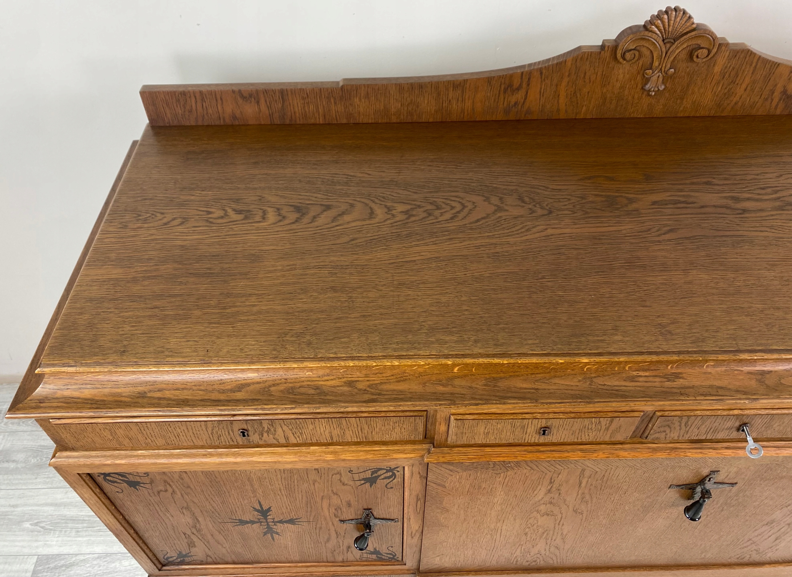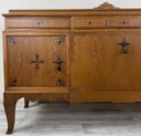 Całość sprawia wrażenie solidnej, wysokiej jakości stolarki meblowej z początku XX wieku, wykonanej z myślą o trwałości i efekcie wizualnym.