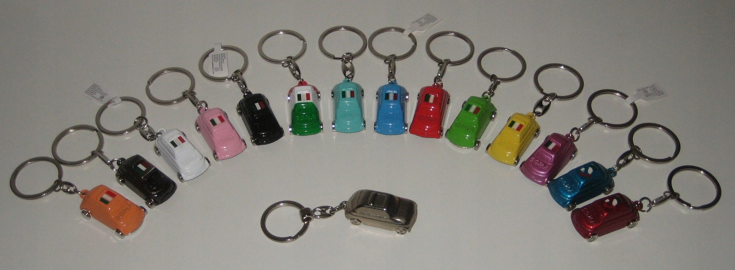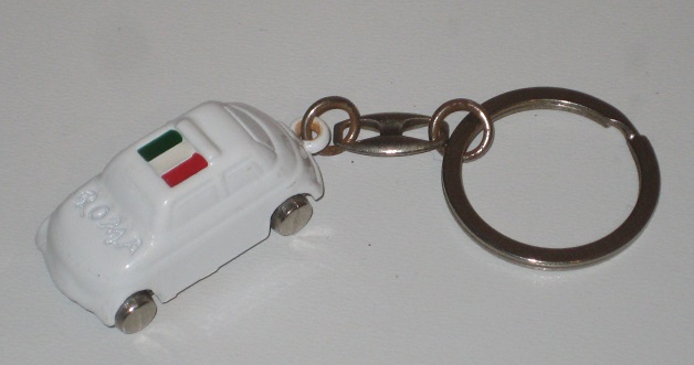 Brelok do kluczy - Fiat 500 - Roma. Kolor: biały. Nowy. Z Włoch. Cena za 1 szt.