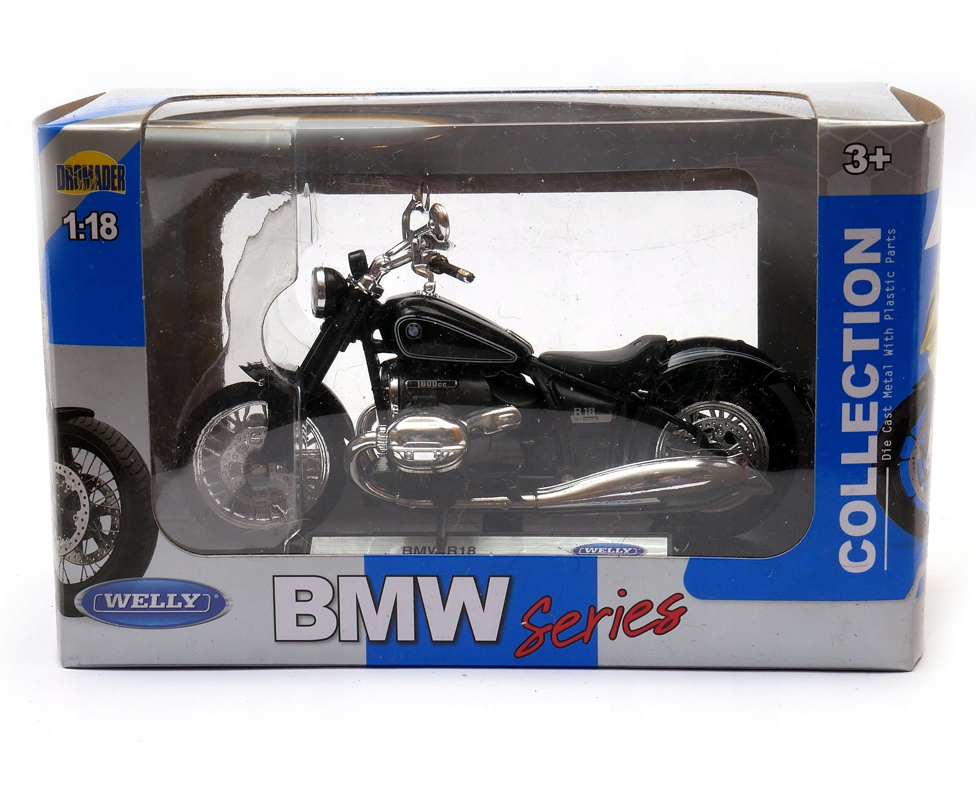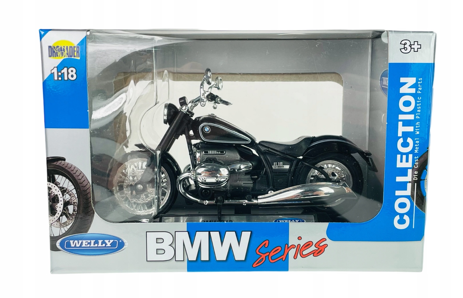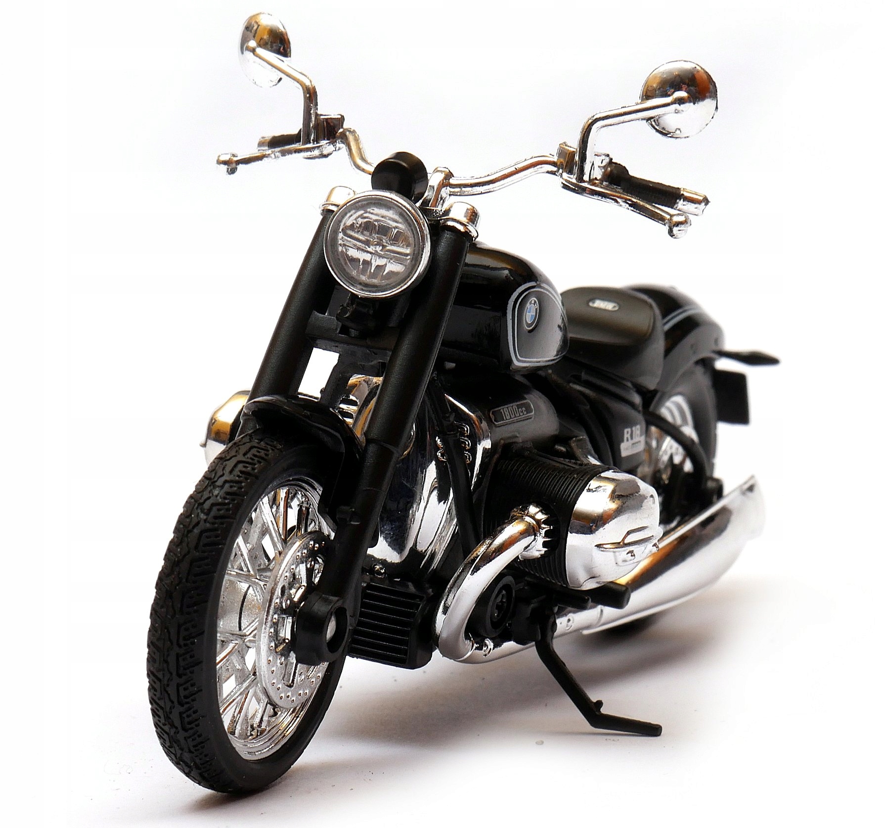 Model motocyklu wykonany z plastiku. Bardzo ładne i estetycznie wykonane. Wysoka jakość użytych materiałów i duża precyzja odwzorowania poszczególnych części. Przedstawione zdjęcia są oryginalne, pokazując autentyczne kolory oraz zawartość zabawki.
