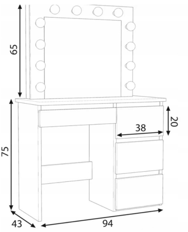 Toaletka posiada 4 duże, pojemne szuflady, dzięki którym: