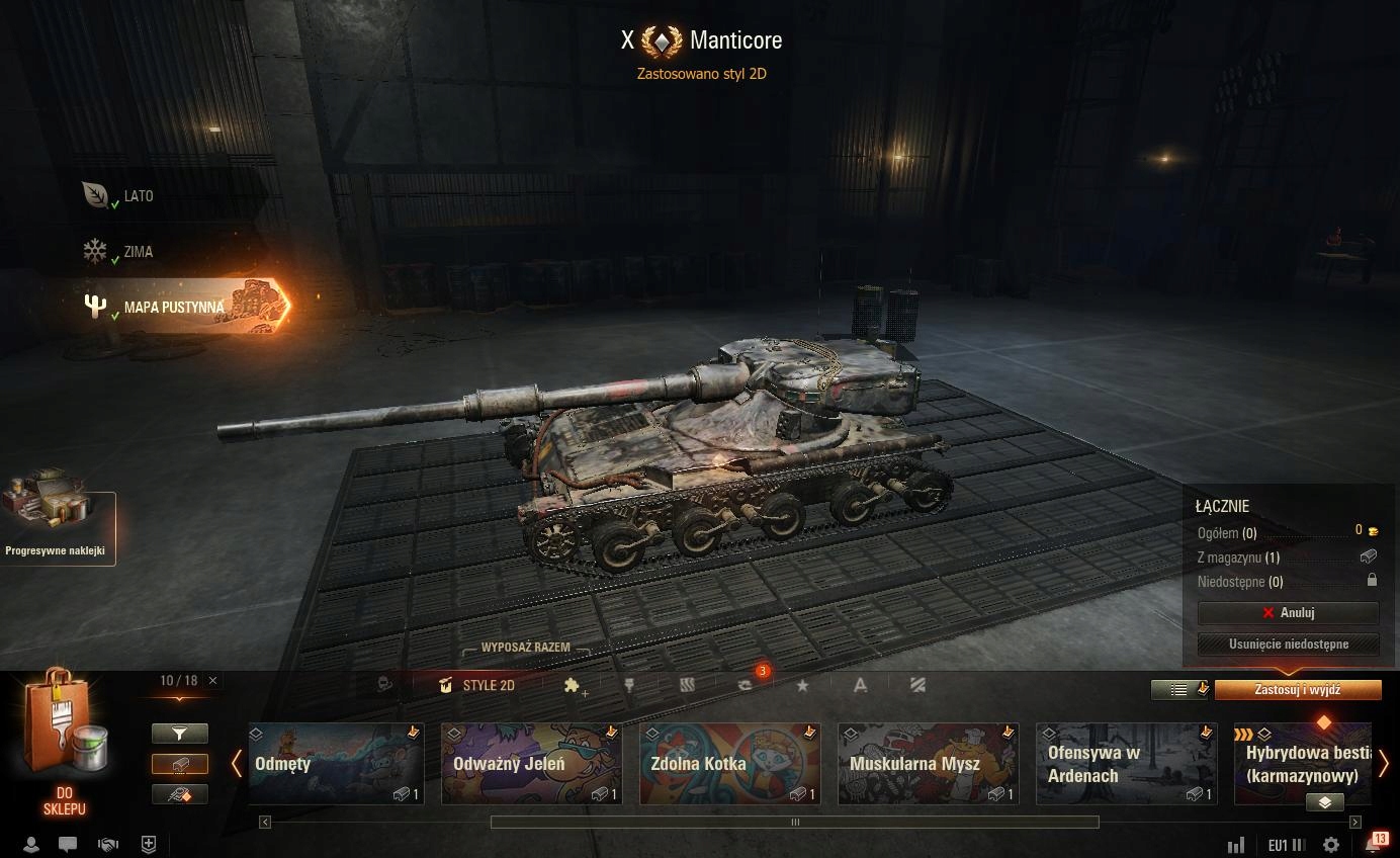 Nowe konto 18 bitw , doskonała propozycja dla graczy, którzy chcą samodzielnie zbudować wysoki ranking zaczynając od wspaniałych czołgów 10 poziomu jakimi są EBR oraz Manticore oraz AMX 13 105. Nie trzeba tracić czasu na wbijanie dziesiątek i ryzykować kiepskie wyniki niskich poziomów, ponieważ można od razu grać 10 poziomami. Konto posiada 7x premium czołgi, 12x książki PD z doświadczeniem ( 1, 500,000 PD doświadczenia) oraz dodatkowe misje 3xPD, dużo kredytów na nowe czołgi.