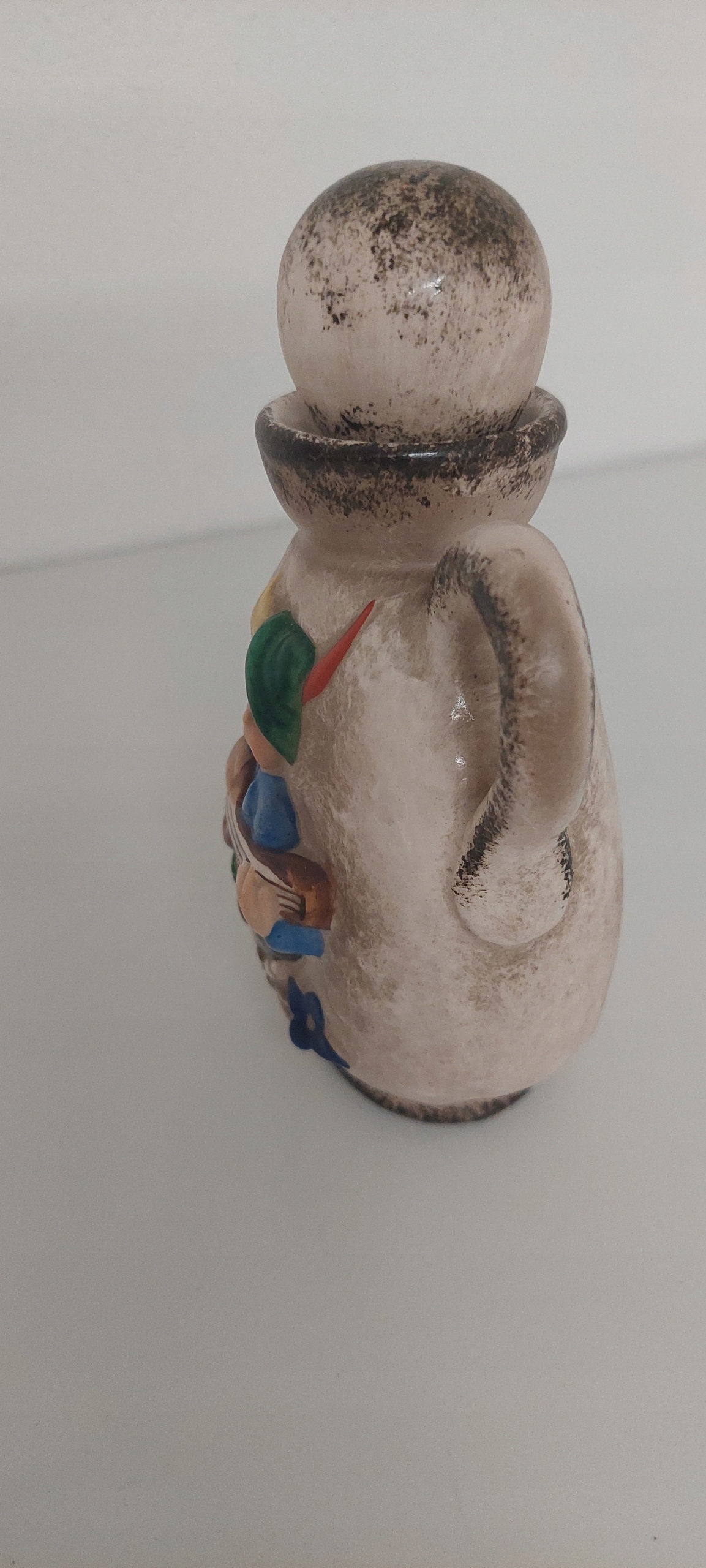 Butelka w bardzo dobrym stanie o wymiarach wysokość 14cm, szerokość 9cm, głębokość 5cm.