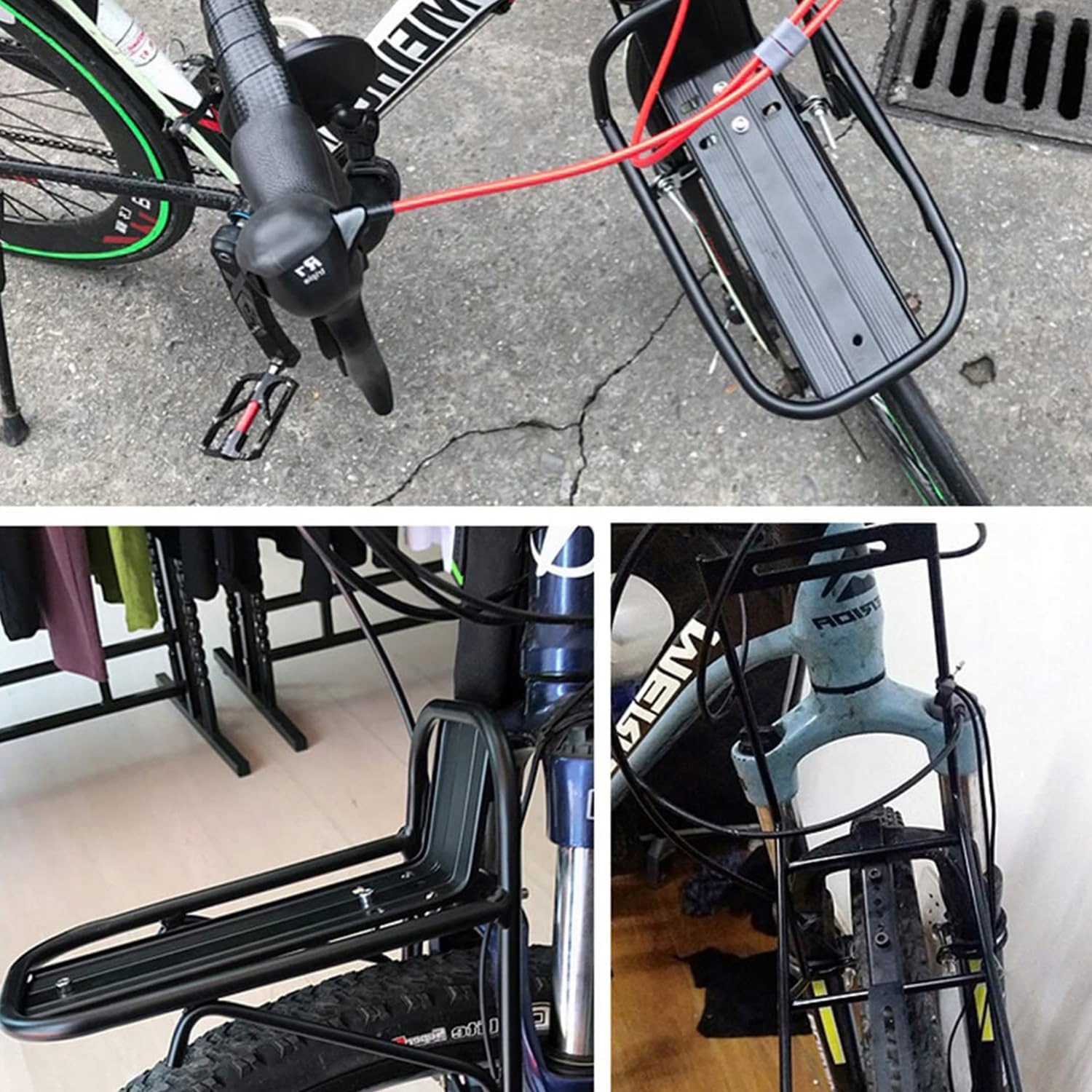 🚴🚴🚴【Szerokie zastosowanie】Przedni bagażnik rowerowy nadaje się do hamulców typu V-brake i tarczowych, nadaje się do montażu z przodu rowerów górskich, wyścigowych i składanych.
