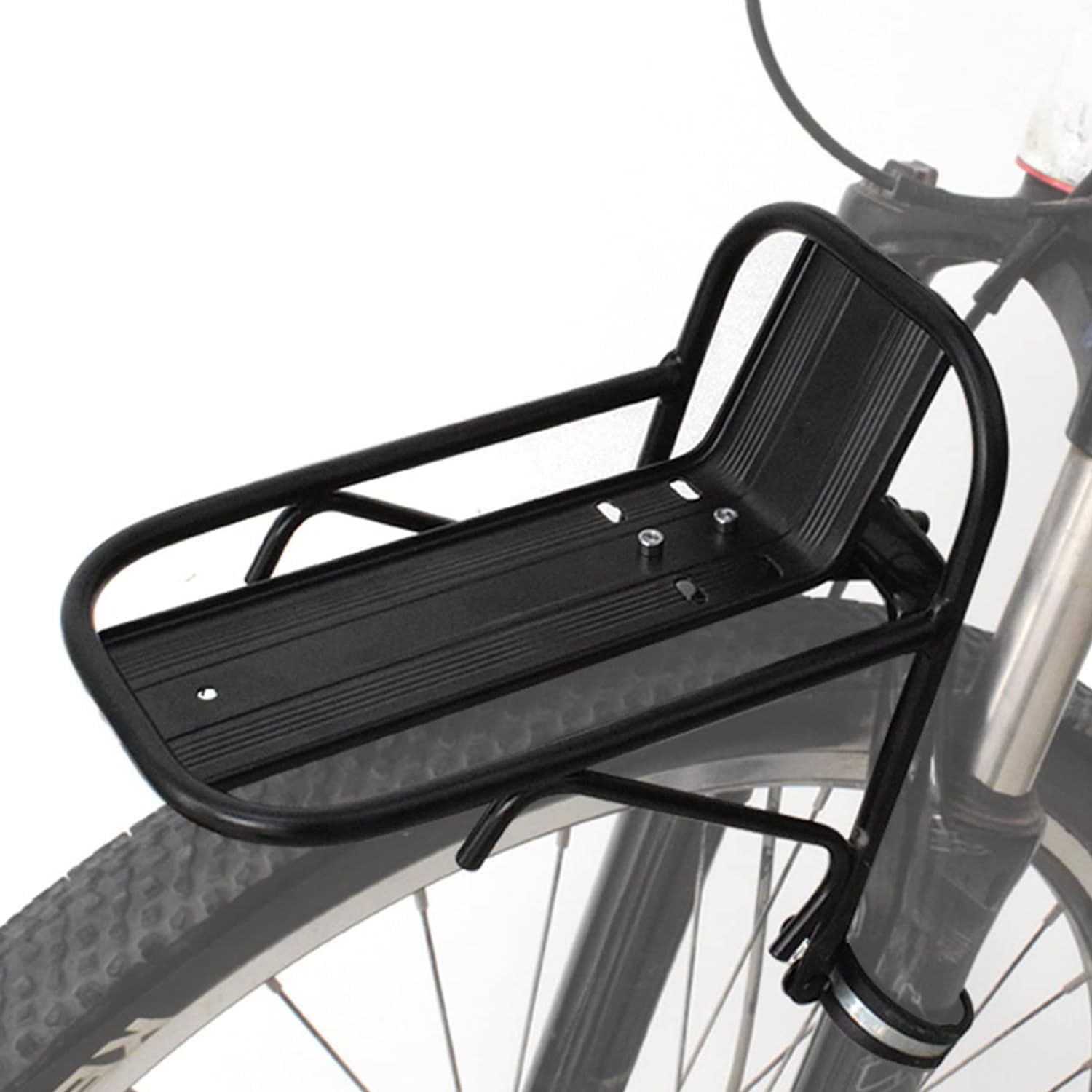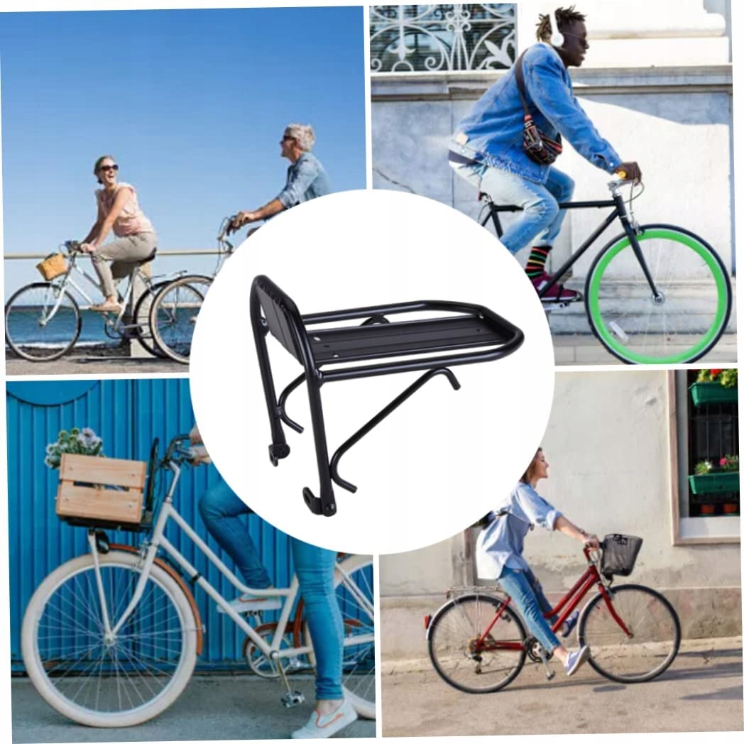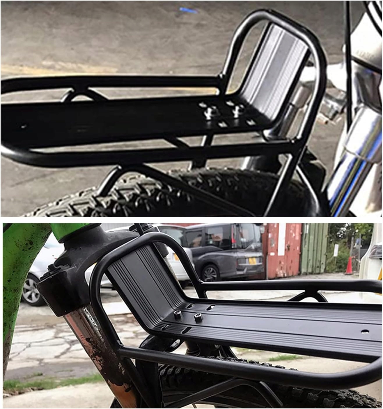 🚴🚴🚴【Materiał wysokiej jakości】Przedni bagażnik rowerowy wykonany jest z wysokiej jakości stopu aluminium z czarną powłoką, który jest mocny, trwały i wytrzymały.