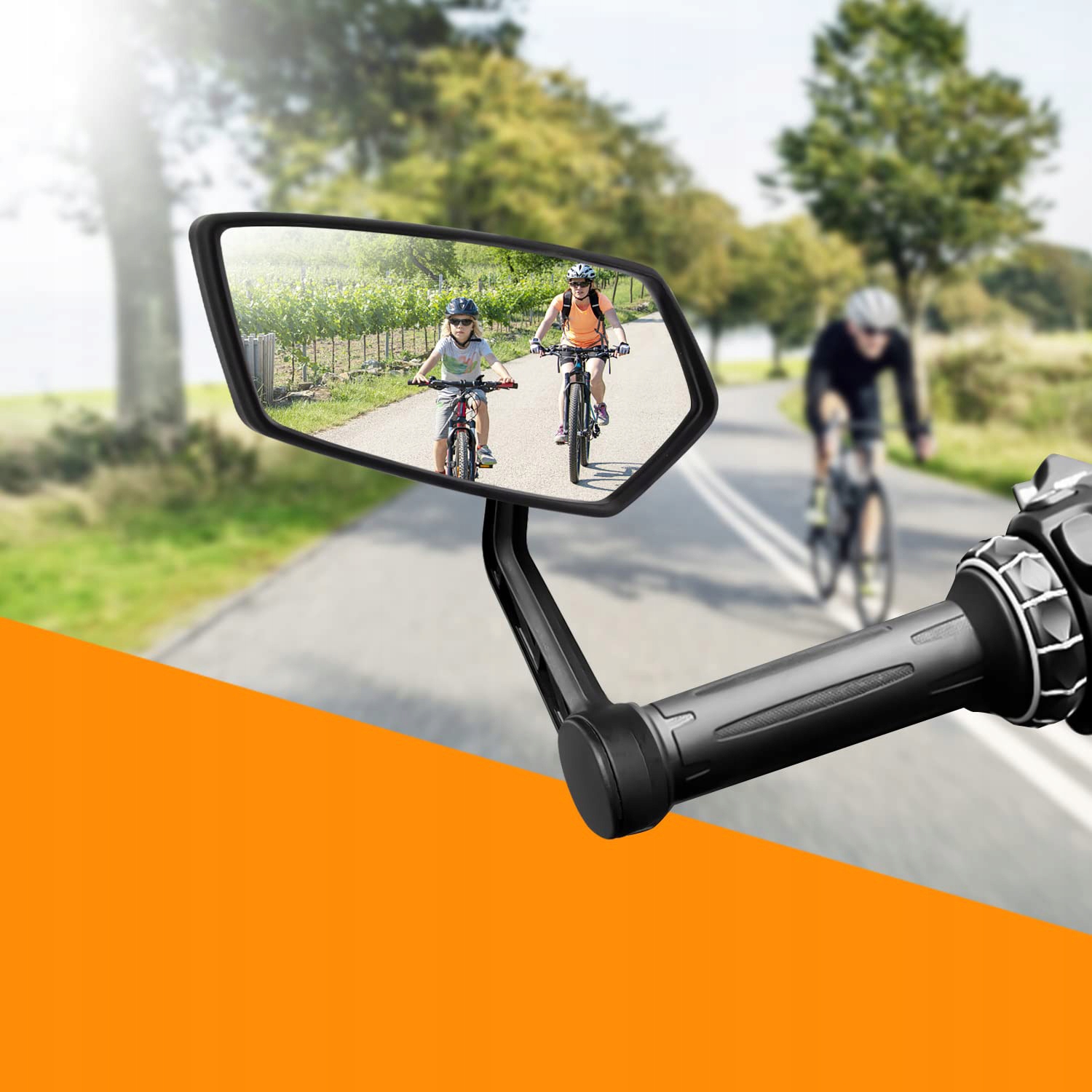 Lusterko rowerowe, dzięki wyjątkowo dużej powierzchni lustra i kierownicy lusterka rowerowego, możliwy jest idealnie wyraźny widok do tyłu bez łokcia na zdjęciu.