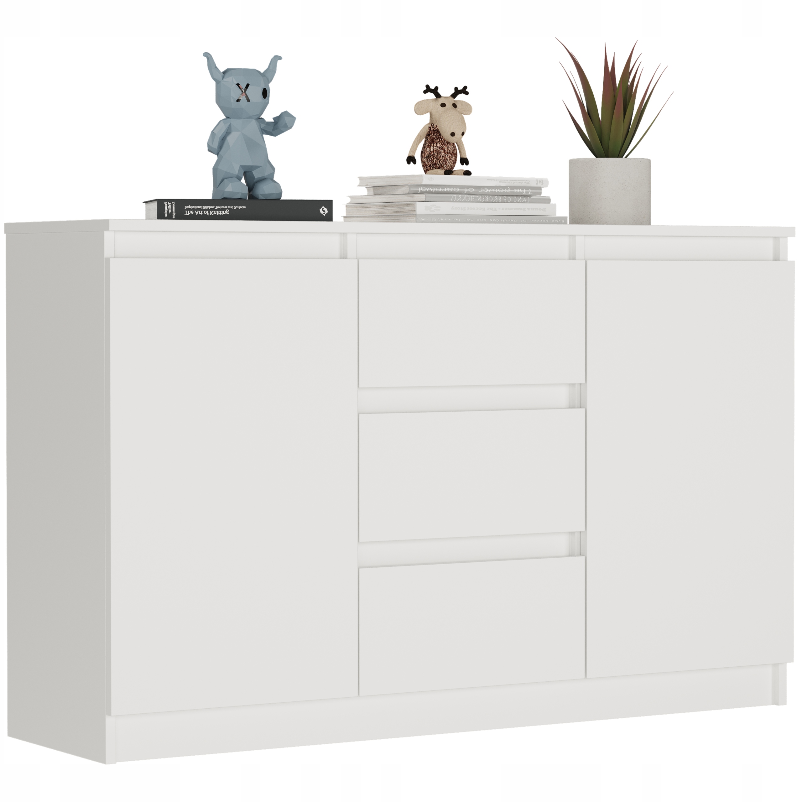 Funkcjonalna i elegancka komoda w nowoczesnym stylu, idealna do salonu, sypialni, przedpokoju lub biura. Prosta forma oraz biały kolor sprawiają, że mebel doskonale wpasuje się w każde wnętrze – zarówno nowoczesne, jak i klasyczne.