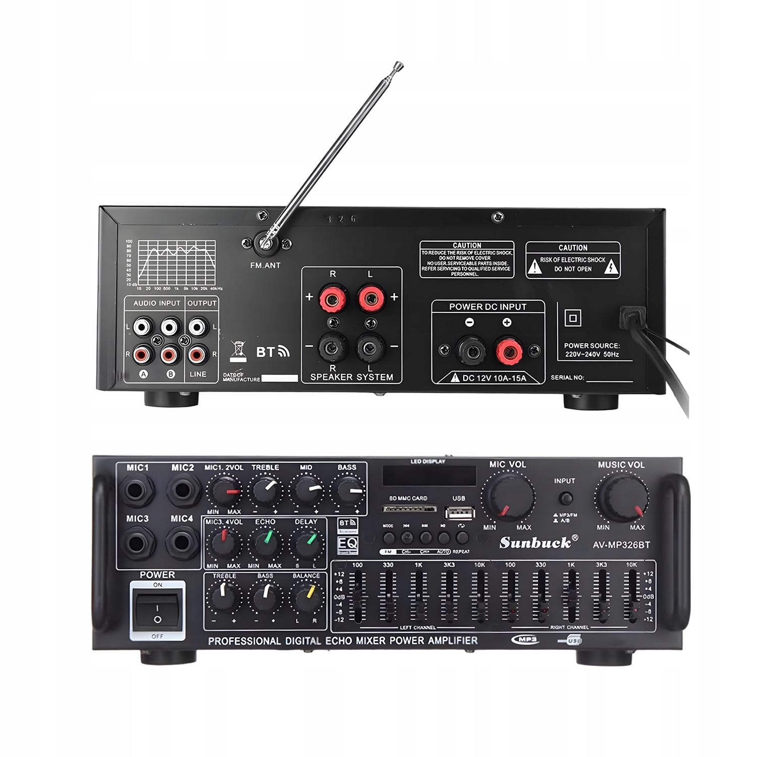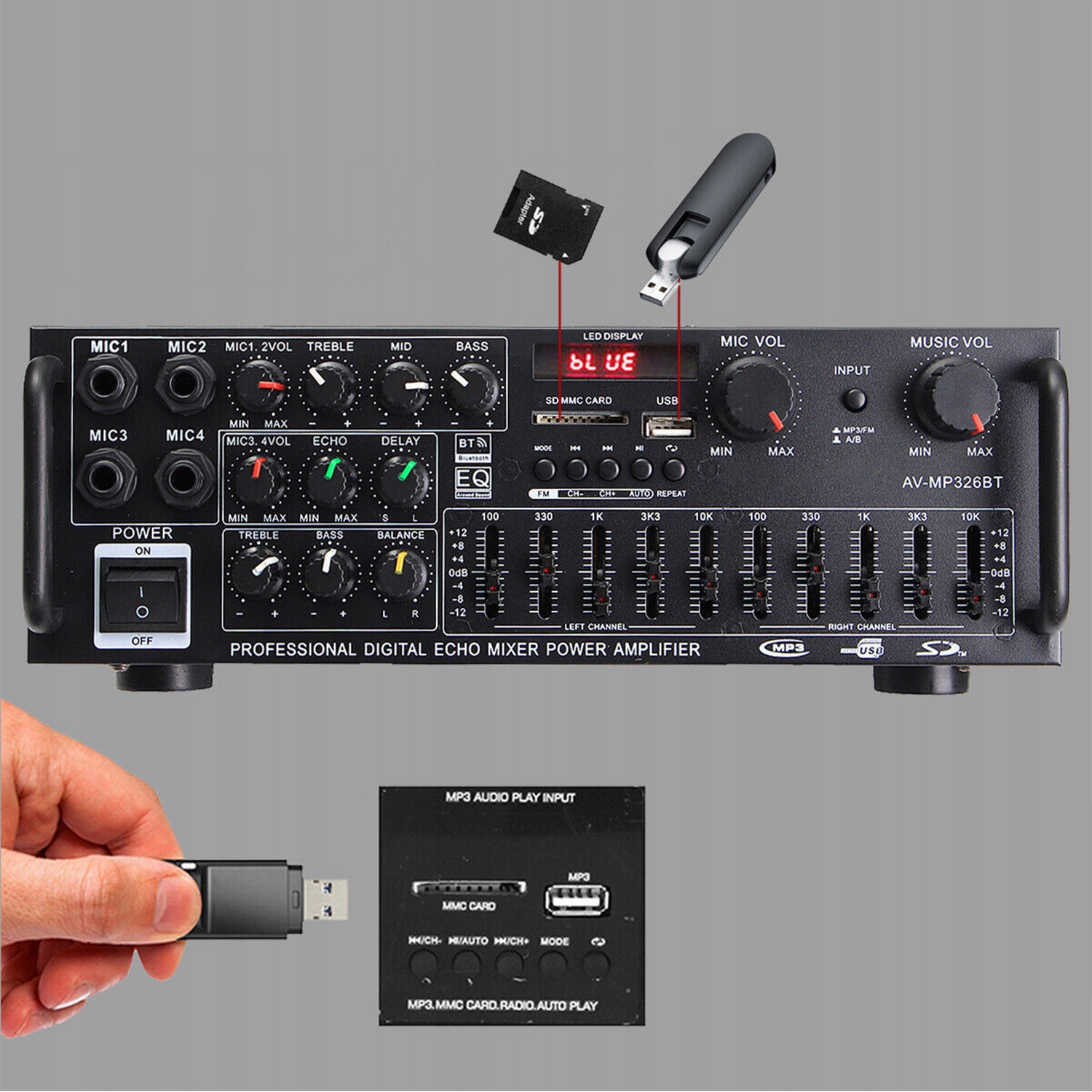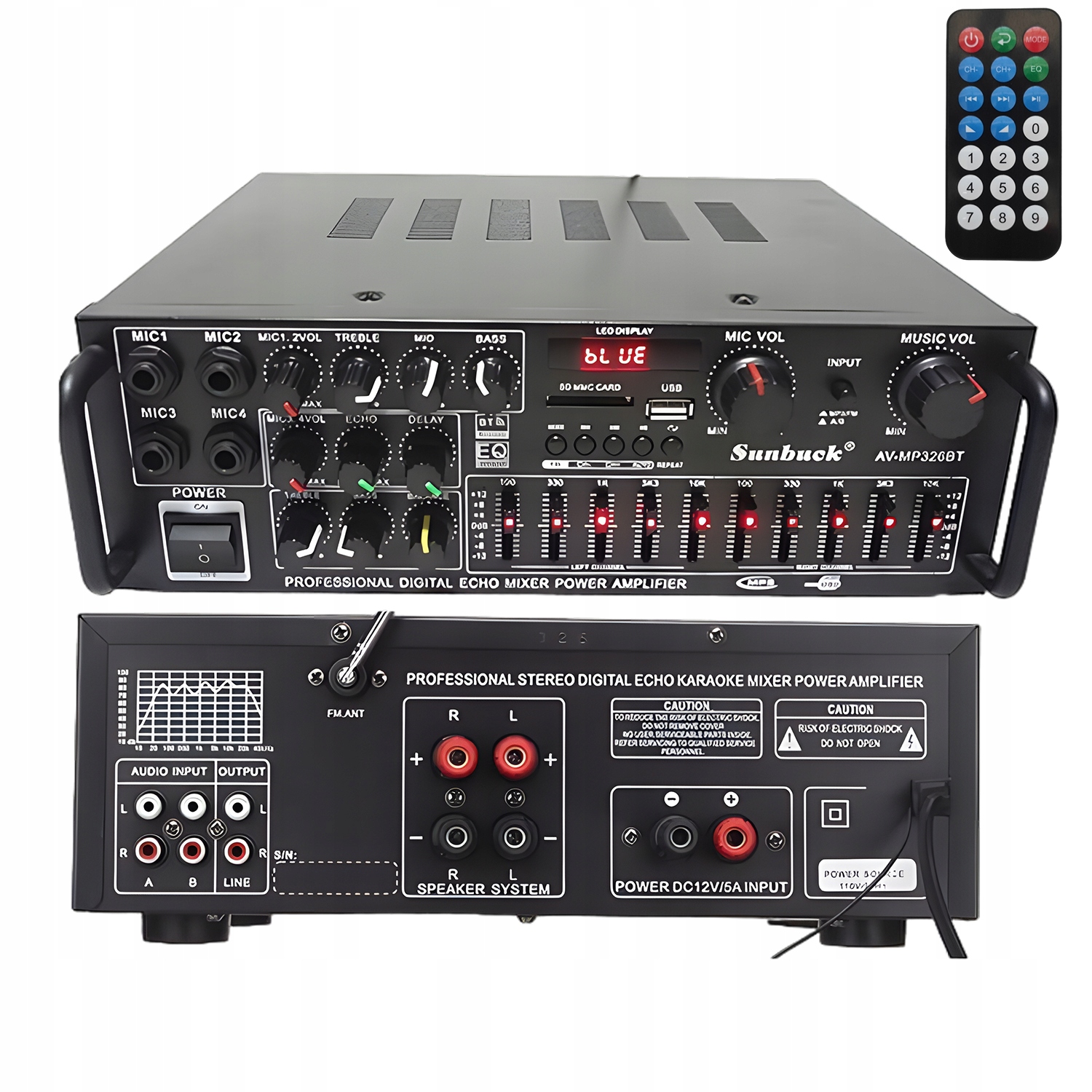 ✨ Główne funkcje: Bluetooth 5.0, wyświetlacz LED, 4 wejścia mikrofonowe, 5-pasmowy korektor