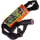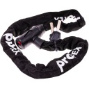Łańcuch wykonany jest ze stali o przekroju 5 × 5 mm, co zapewnia skuteczną odporność na próby przecięcia. Długość 90 cm pozwala na wygodne przypięcie roweru do stałych elementów.