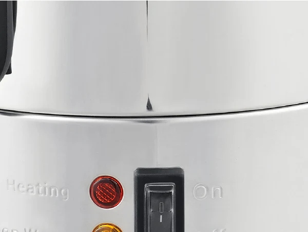Podgrzewacz o mocy 1500 W podgrzewa napoje w zakresie temperatur od 30 do 110°C. Za pomocą pokrętła możesz płynnie ustawić żądaną temperaturę. Wbudowane kontrolki sygnalizują, czy napój jest podgrzewany, czy utrzymywany w zadanej temperaturze.