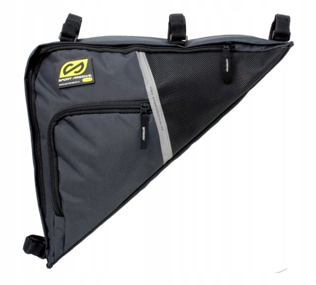 Montaż do ramy za pomocą 4 pasków z rzepami. Wewnętrzne usztywnienie utrzymuje kształt sakwy - dodatkowo wzmocniony i usztywniony spód. Łatwy dostęp do każdej z kieszeni poprzez długi zamek rozpinany wzdłuż obu ścianek. W zestawie samozaciskowa opaska odblaskowa.