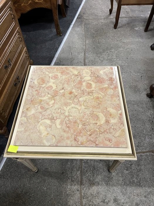 Przedmiotem sprzedaży jest piękny stolik z marmurowym blatem.