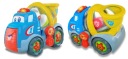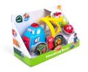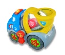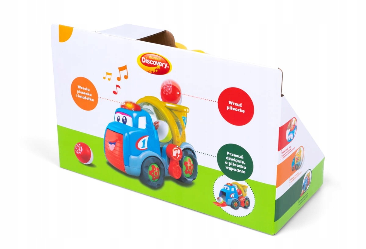 Poznaj uśmiechniętego kumpla na 4 kółkach, który śpiewa po polsku i wyrzuca piłeczki! Aby uruchomić piosenkę, naciśnij na czerwony guzik umieszczony na dachu pojazdu. Swobodny ruch kół umożliwia prowadzenie zabawki rączką. Z boku betoniarki znajduje się sprytna dźwignia. Przesuń ją w przód, aby opuścić klapę i obserwuj jak Benio wyrzuca piłeczkę!