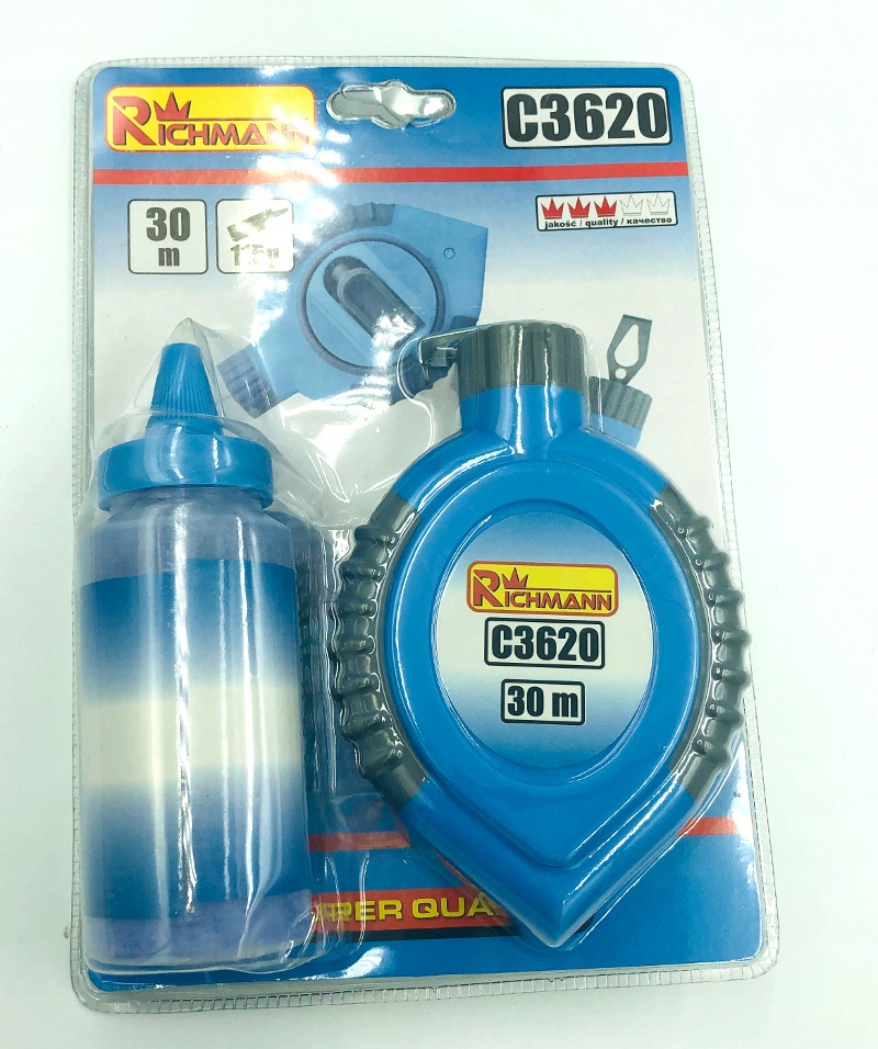 Sznurek traserski w plastikowej obudowie wykorzystywany do wyznaczania prostych linii na ścianie lub innym podłożu. Posiada metalowy zaczep i dozownik na kredę. Długość sznurka traserskiego to 30 metrów. Kreda traserska wykorzystywana do znaczenia poziomu na ścianach. Kreda traserska jest niezbędna przy sznurze traserskim, który pozostawia ślad linii na trasowanej powierzchni.