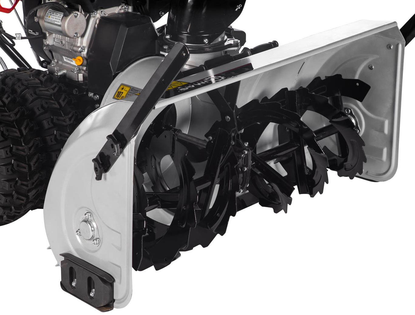 Направление выброса снега регулируется электрически, с помощью переключатели (вертикальная и горизонтальная регулировка).
