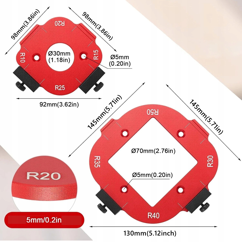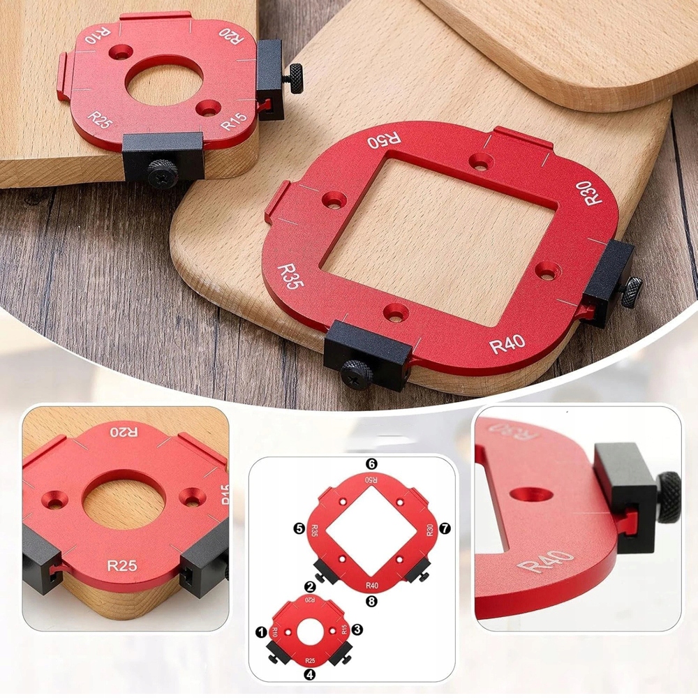 Ten szablon do frezarki to wszechstronne urządzenie wielofunkcyjne, zaprojektowane jako 4 w 1, co ułatwia transport i przechowywanie. Nie potrzebujesz już dodatkowych narzędzi do zaokrąglania narożników – to praktyczne narzędzie zawiera wszystko, co potrzeba do różnych potrzeb związanych z kształtowaniem łuków.